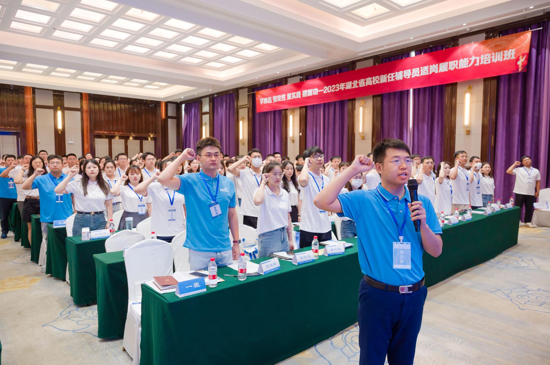全体学员进行入职宣誓,米兰辅导员霍少孟带领学员宣读高校辅导员誓词。