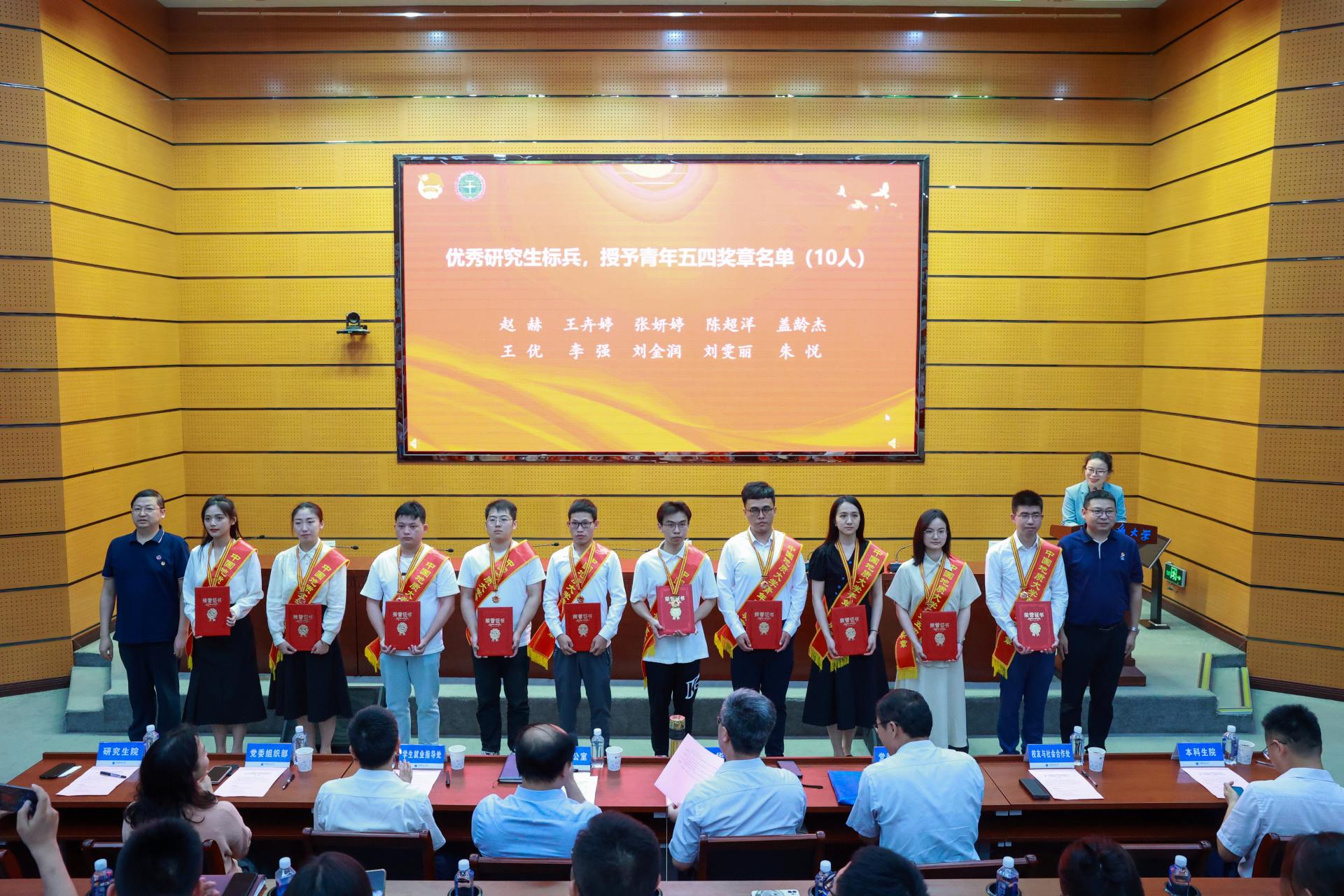 校友与社会合作处处长陈华荣、研究生院副院长成中梅为优秀研究生标兵、米兰milan官方网站青年五四奖章获得者颁奖。
