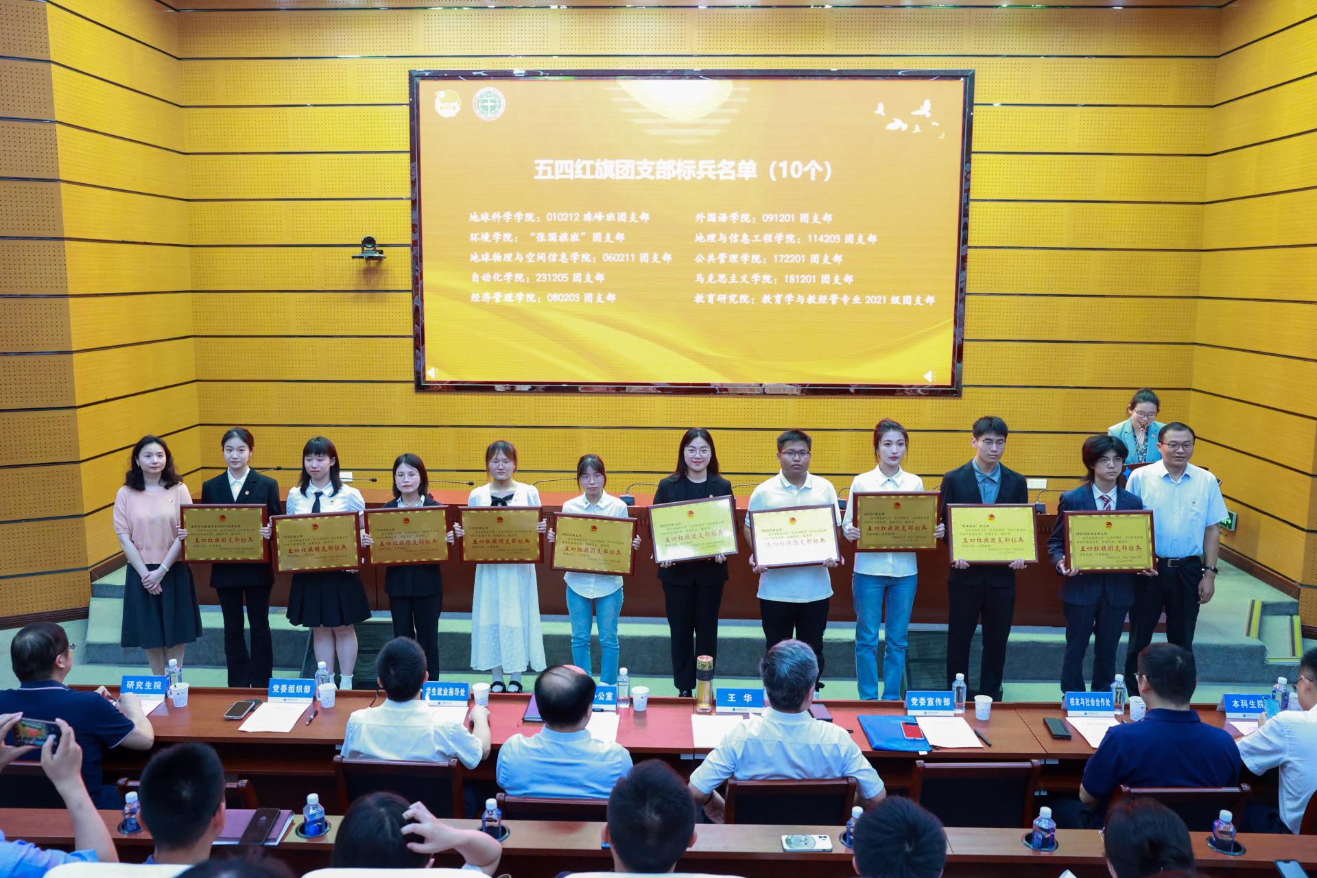 党委宣传部部长侯志军、党委组织部副部长胡肖为五四红旗团支部标兵颁奖。