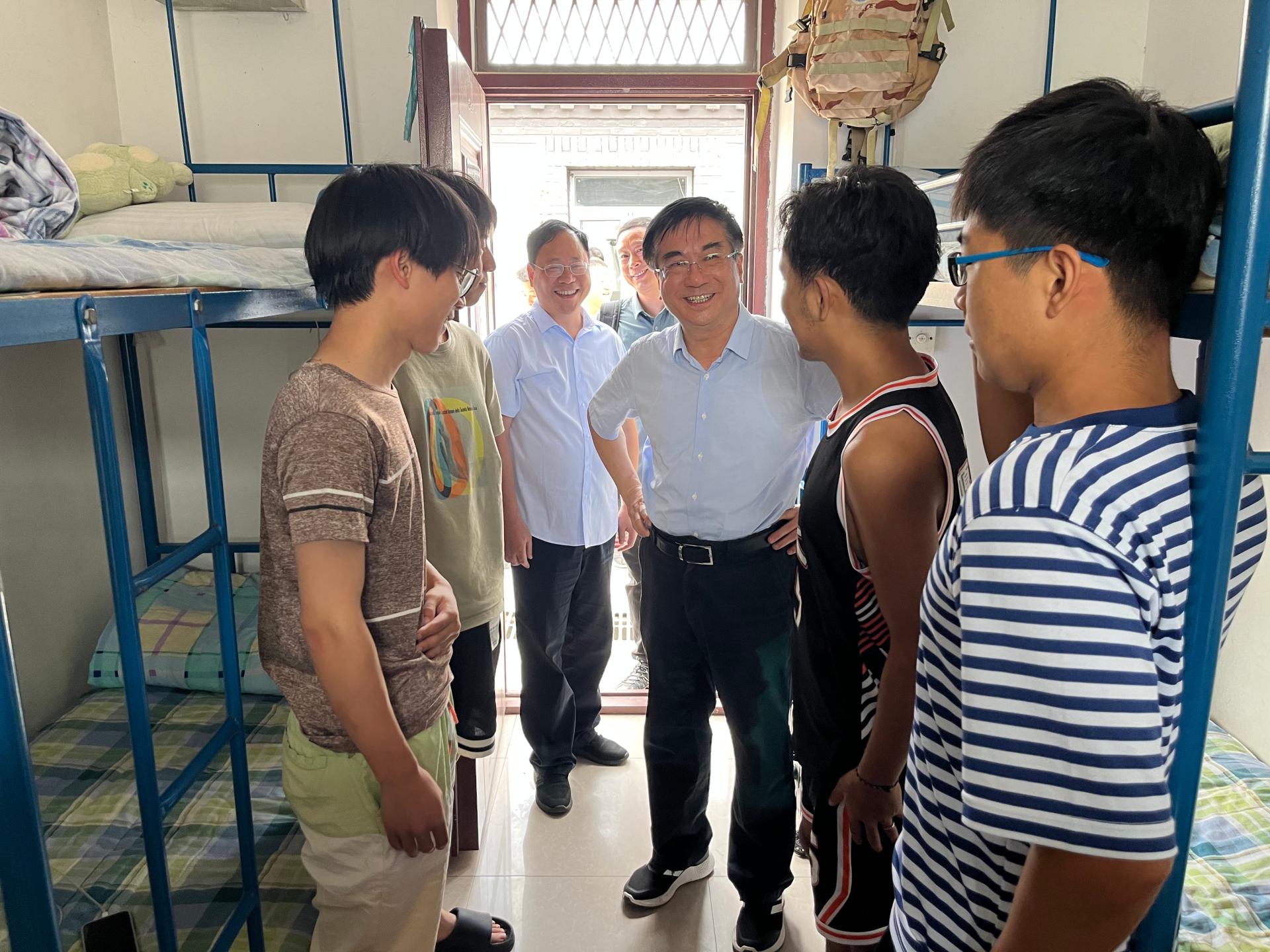 野外路线考察结束后,王焰新一行回到周口店实习站,参观了全新改造的标本陈列室、岩矿实验室,走访了学生宿舍,与开展室内整理工作的师生亲切交流。他关心师生在站实习情况,叮嘱师生要提高安全意识,注意防暑,勉励同学们要努力学到真本事、锤炼真本领。