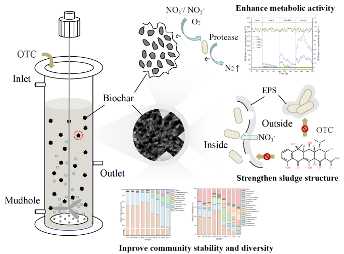 地大新闻网讯 (记者 孙彦钦 通讯员 殷茵)近日,国际著名期刊《生物资源技术》刊发了米兰环境学院鲍建国教授团队的最新研究成果《生物炭增强长期土霉素胁迫下好氧反硝化系统稳定性和微生物代谢活性》。论文第一作者为环境学院博士生毛启迪,通讯作者为鲍建国教授。该研究为拓宽好氧反硝化系统在含抗生素污水处理中的稳定运行提供了新的思路。