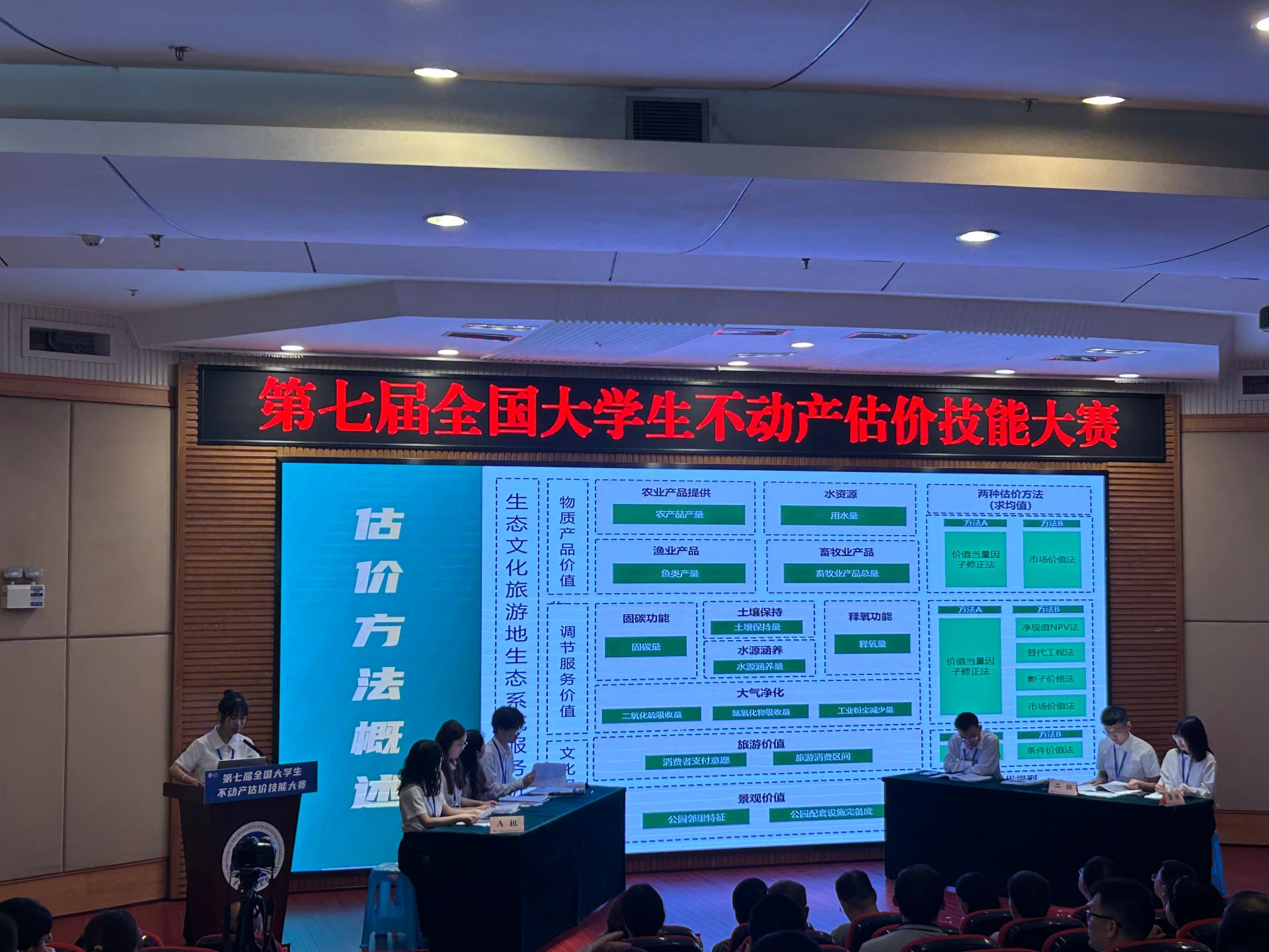 由柴季、姚小薇、王占岐老师指导,2020级本科生李雨霏、俞泽欣、李锦腾和2021级本科生徐扬完成的《武汉市江夏区灵山矿山公园生态系统服务价值评估报告》获特等奖。由杨建新、龚健老师指导,2020级本科生杨雅洁、徐柯欣、张裕和张宸玮完成的《武汉市玛瑙村集体建设用地租赁住房市场价值评估报告》获二等奖。