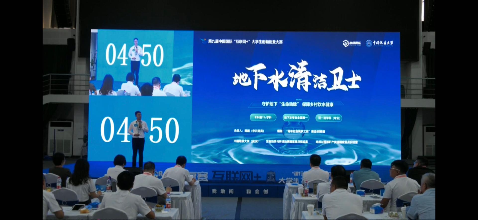 “青年红色筑梦之旅”赛道创意组金奖项目《地下水清洁卫士——守护地下“生命动脉” 保障乡村饮水健康》,由王焰新、甘义群、史建波、谢先军、杜尧等老师指导,硕士研究生韩鹏担任项目负责人。团队发现湖北省仙桃市一带地下水砷、铁等元素浓度严重超标,为解决农村地区饮水安全问题,团队研发了地下水原位注入修复技术和砷—铁—硬度联合去除技术,从而实现了地下水资源健康管理。目前,技术已经应用到了湖北、河北、山西等地。未来,团队力求向全国劣质地下水覆盖区域提供保护利用方案,助力乡村振兴与健康中国。