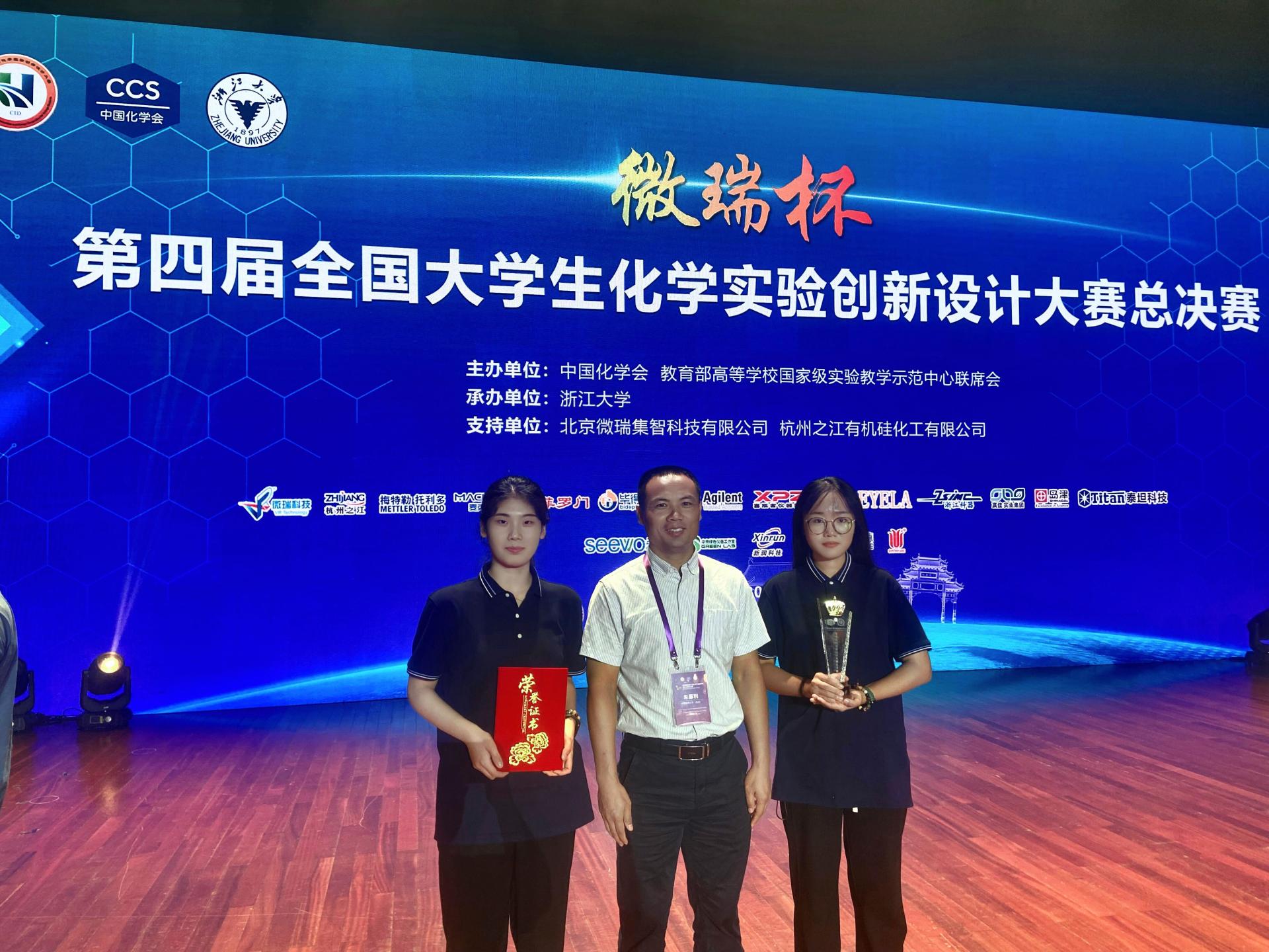 地大新闻网讯(通讯员 唐伟)8月21日至22日,第四届全国大学生化学实验创新设计竞赛全国总决赛在浙江大学举行,西北、西南、华北、华东、华中、华南、东北七大初赛赛区的90所高校、近500名师生参与总决赛。米兰材料与化学学院王斐、梁莹然、孙佳宝三名同学组建参赛团队代表学校进入全国总决赛,并获得特等奖。