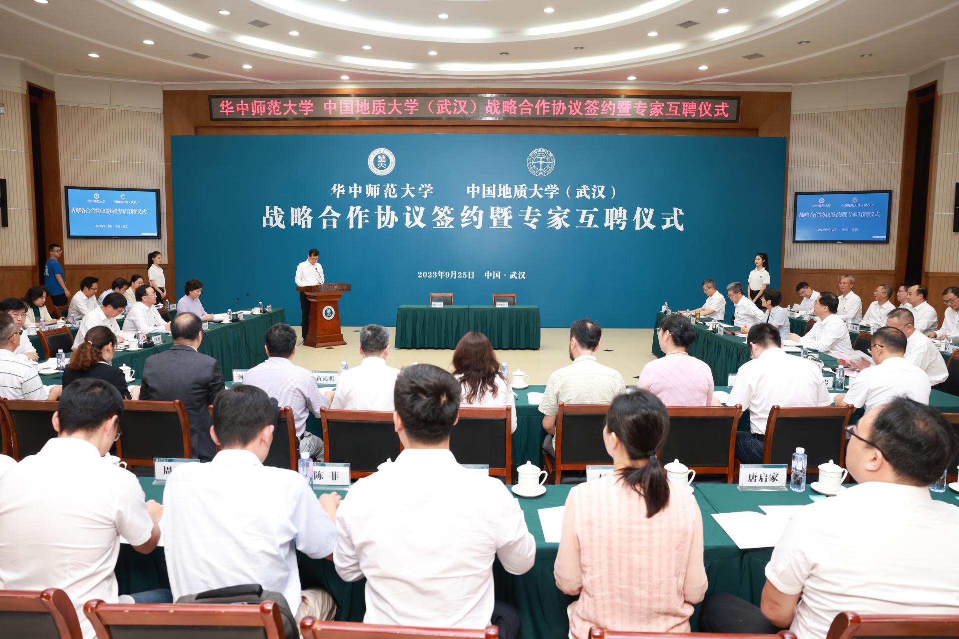 夏立新在讲话中表示,桂子山与南望山比肩而立,地大和华师同气连枝,两校渊源深厚、历久弥新,有着共同的文化基因,精神气质相近、学科特色互补。两校签订战略合作协议,充分发挥各自学科特色优势,在新工科、新文科建设上相互支持、携手共进,是一件具有里程碑意义的盛事。希望两校在今后的合作中扎根中国大地,携手服务党和国家重大战略需求;聚焦重点领域,强化优势互补,推动原始创新和关键领域突破;优化合作机制,拓展合作范围,不断创新合作形式和内容,实现双向赋能,为中国特色世界一流大学建设闯新路、创示范,为构建高质量高等教育体系、建设教育强国、推动实现中国式现代化作出更大贡献。