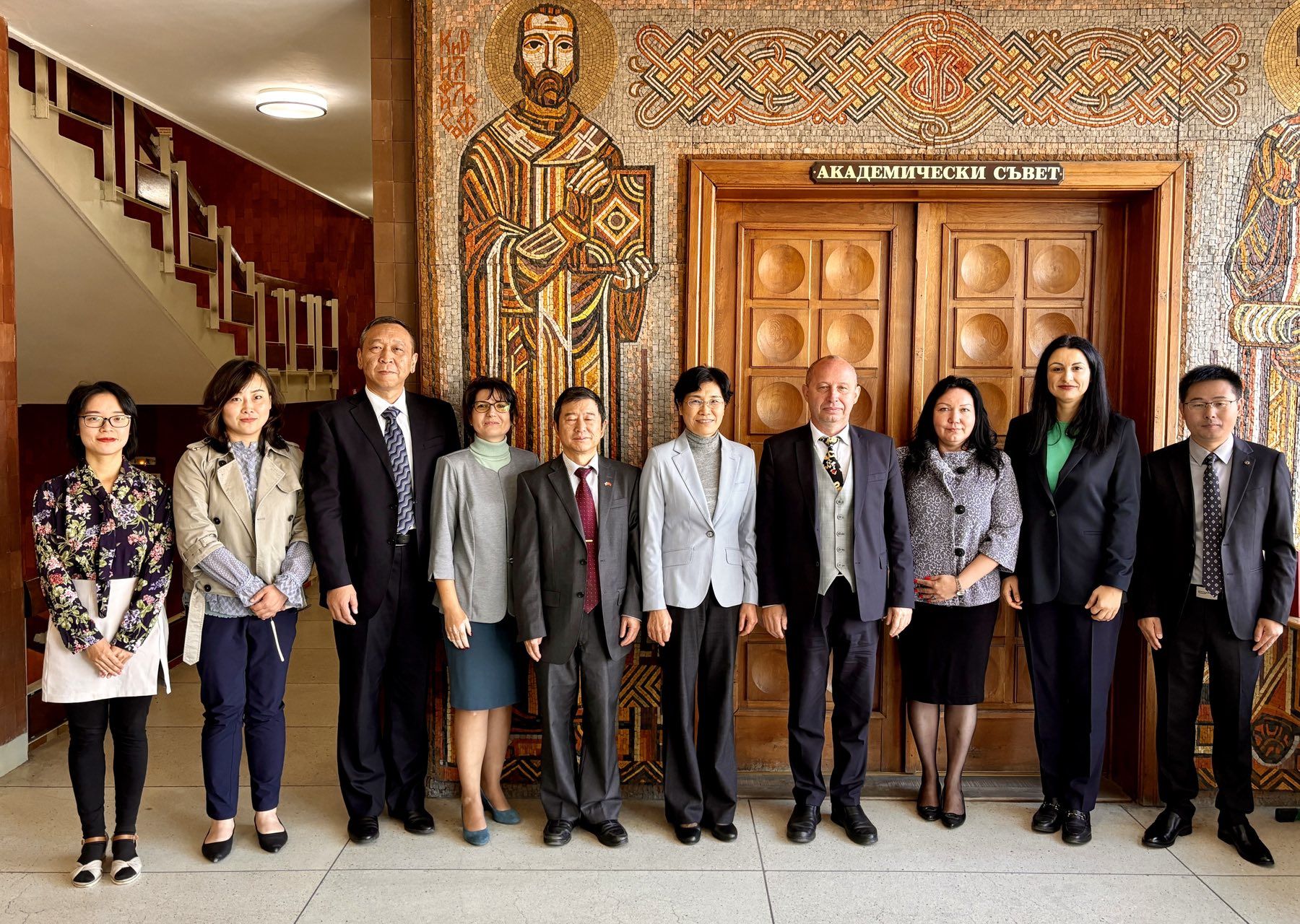 在欧洲访问期间,黄晓玫带队分别拜访中华人民共和国驻法大使馆和驻保加利亚大使馆,与周家贵、王敏参赞进行会谈。黄晓玫介绍了学校在人才培养、科学研究、文化交流等方面与国外伙伴单位开展的合作及取得的成效。周家贵对米兰和法国高校之间的合作成果表示赞赏,期待地大与法国高校开展多层次、全方位的交流合作,在人才培养、科学研究、学科建设等领域加强资源共享,实现互利共赢。王敏回顾大特孔院在过去的十一年里从无到有、从小到大的发展历程,指出大特孔院在保加利亚全境形成了很强的辐射力与影响力,称赞在中文教育和文化交流方面取得的丰硕成果,对学校及孔院中方院长董元兴教授的工作予以充分肯定。