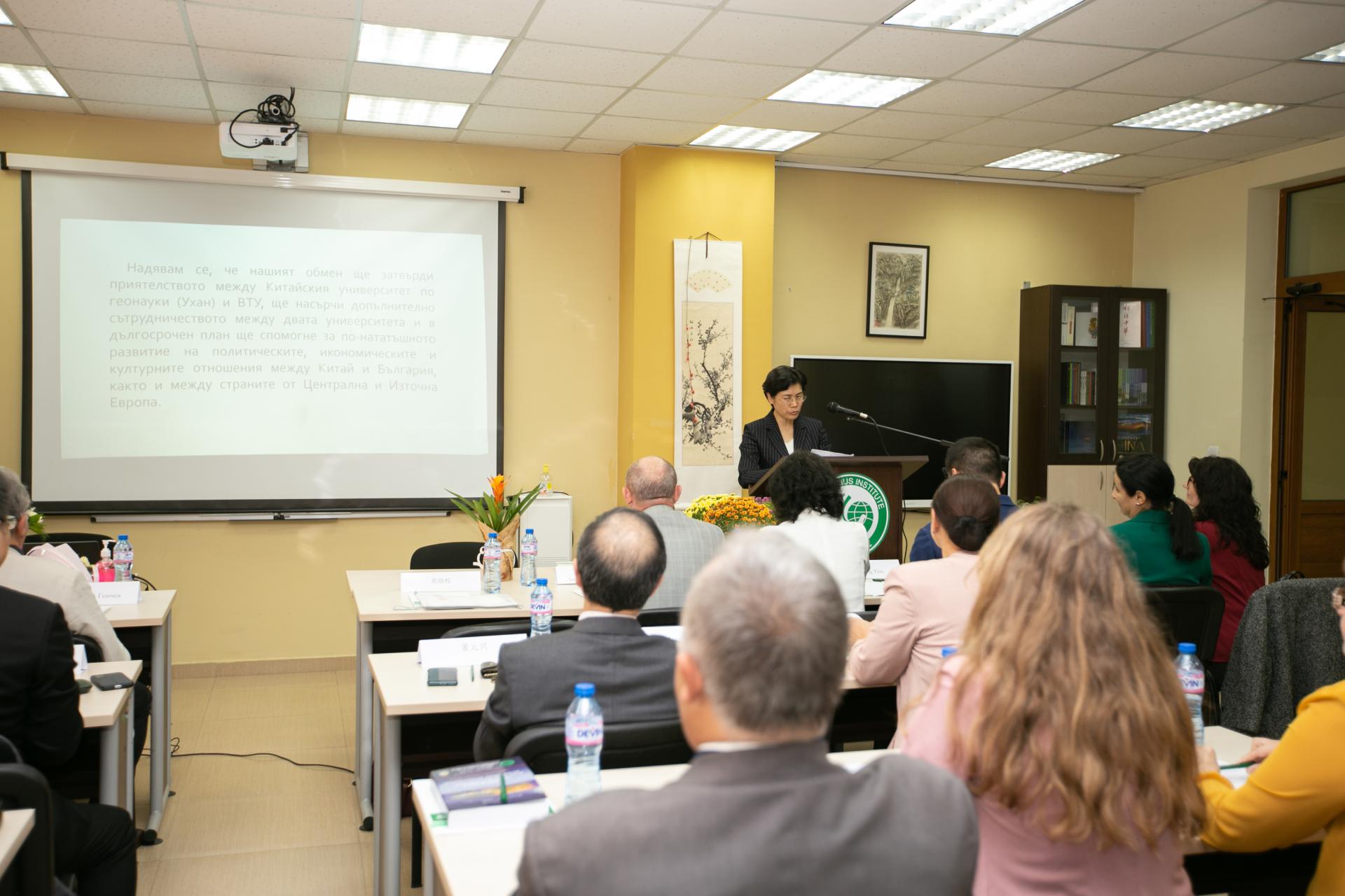10月13日,黄晓玫出席“中国与中东欧政治、经济、文化关系”国际学术研讨会开幕式并讲话。黄晓玫指出,由大特大学孔子学院主办的第十届“中国与中东欧政治、经济、文化关系”国际学术研讨会已经成为探讨中国与中东欧国家双边关系,促进中国与保加利亚两国学者交流与合作的重要平台。中国与中东欧国家处于“一带一路”的两端,双方的全方位交流既能给更多沿线国家作出良好示范,也将惠及更广阔地区的人民。学校将继续扩大开放,为促进中国与保加利亚及中东欧国家政治、经济、文化合作发展作出应有的贡献。经济管理学院院长於世为教授在论坛上作了题为《中欧能源安全与转型》的报告。会后,黄晓玫一行看望了在大特孔院工作的教师和志愿者代表。