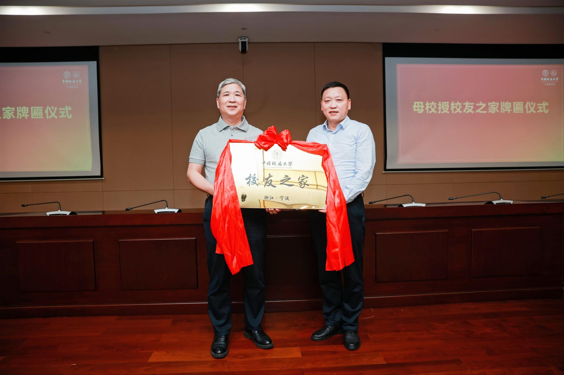 王林清为米兰milan官方网站宁波校友会授“校友之家”牌匾。