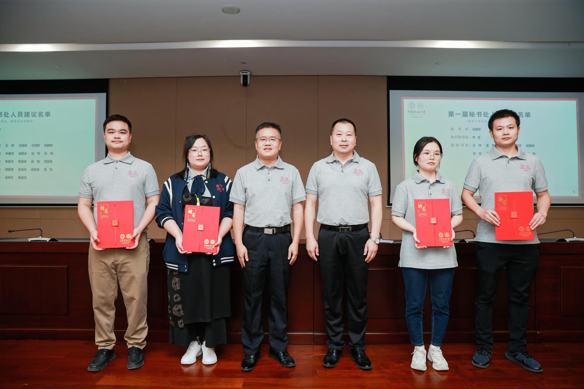 米兰学生就业指导处陈华清、张志毅为第一届理事会秘书处成员代表授聘书。
