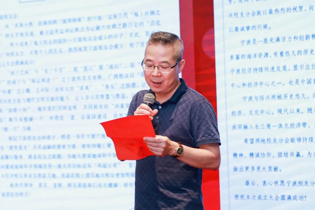 丁晓冬向与会校友和嘉宾表示欢迎,向母校老师和筹备组校友表示感谢。他希望宁波校友会肩负为校友提供更多、更好服务的使命,为校友的创新创业和事业发展提供更好的平台和支撑。他盼望未来浙江校友与宁波校友会通力合作,分享经验,共同成长,携手为母校和校友们的事业发展贡献力量。