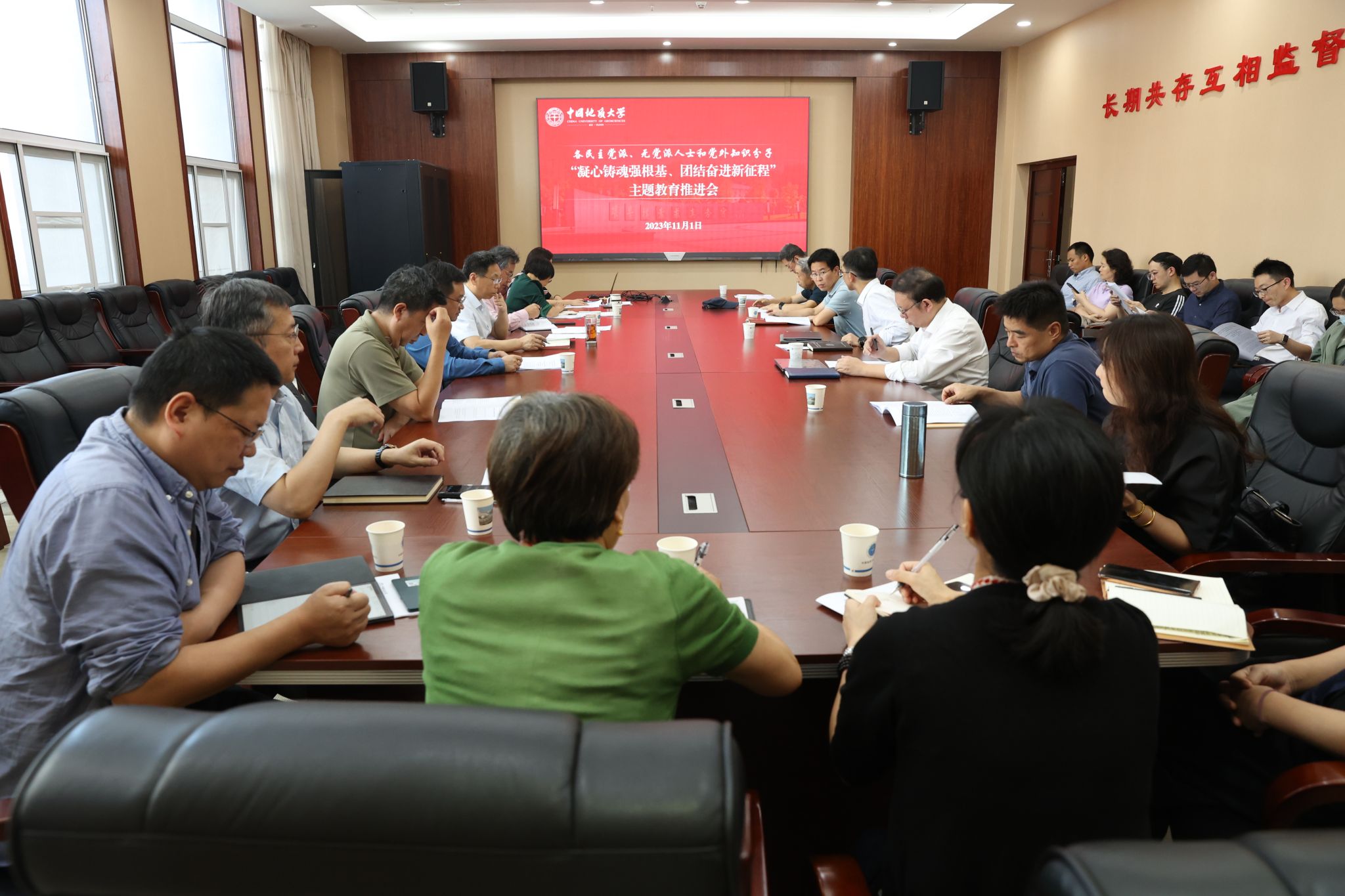 民革地大支部主委宁伏龙,民盟地大委员会主委曹淑云,九三学社地大委员会主委王伦澈,校党外知识分子联谊会会长童金南、副会长曹桂华,武汉市政府参事李长安,结合“凝心铸魂强根基、团结奋进新征程”主题教育开展以来有关学习工作情况分别作交流发言,同时,围绕党派团体基层组织建设,党外干部培养使用管理,党外人士参政议政、民主监督作用发挥等学校第十三次党代会有关统战工作任务进行讨论和交流。