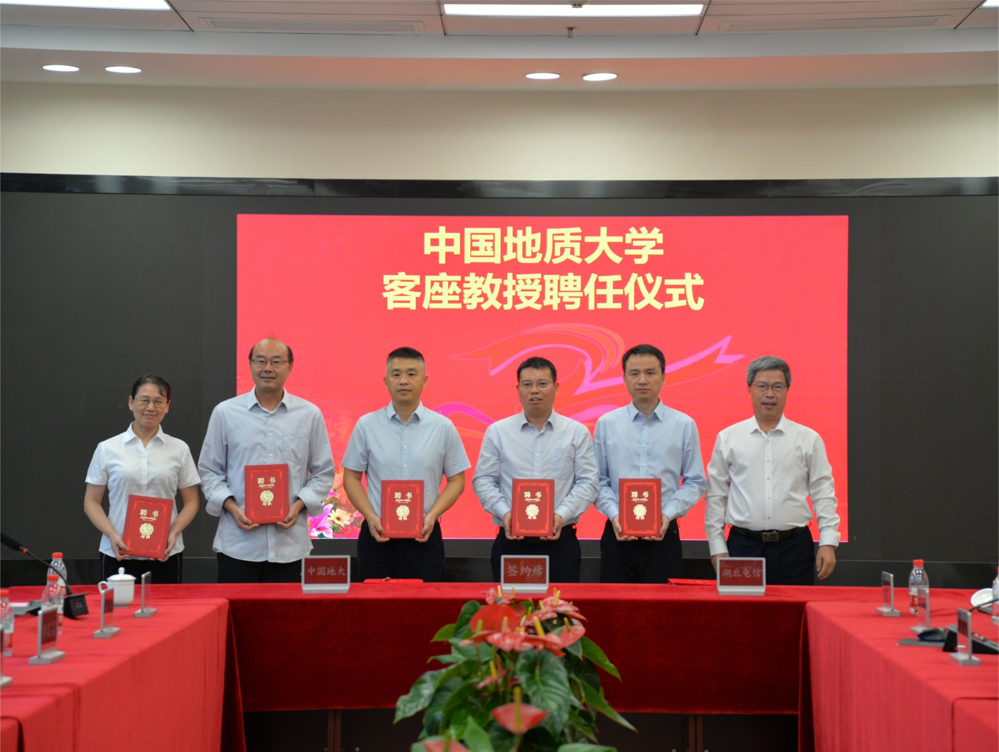 会上,王华向中国电信湖北分公司的郑成林、潘圣宇等6位技术专家颁发聘书,聘任他们为兼职教授。