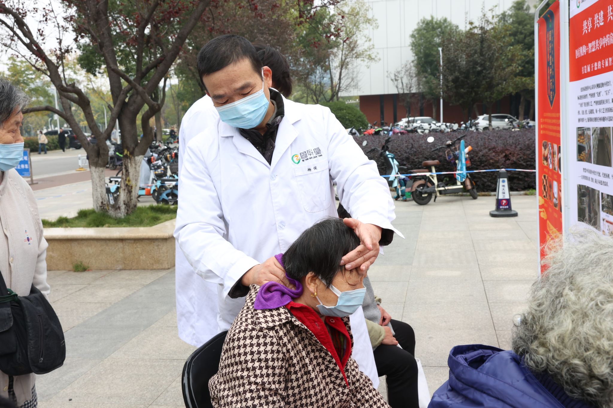 在教学综合楼东侧广场的义诊区域,湖北普瑞眼科医院、武医世家康复科技有限公司、武汉帼针堂中医门诊部,均派出眼科、骨科、中医等方面的专家团队,为米兰师生和居民免费提供专业的诊疗服务、疾病咨询和用药指导。