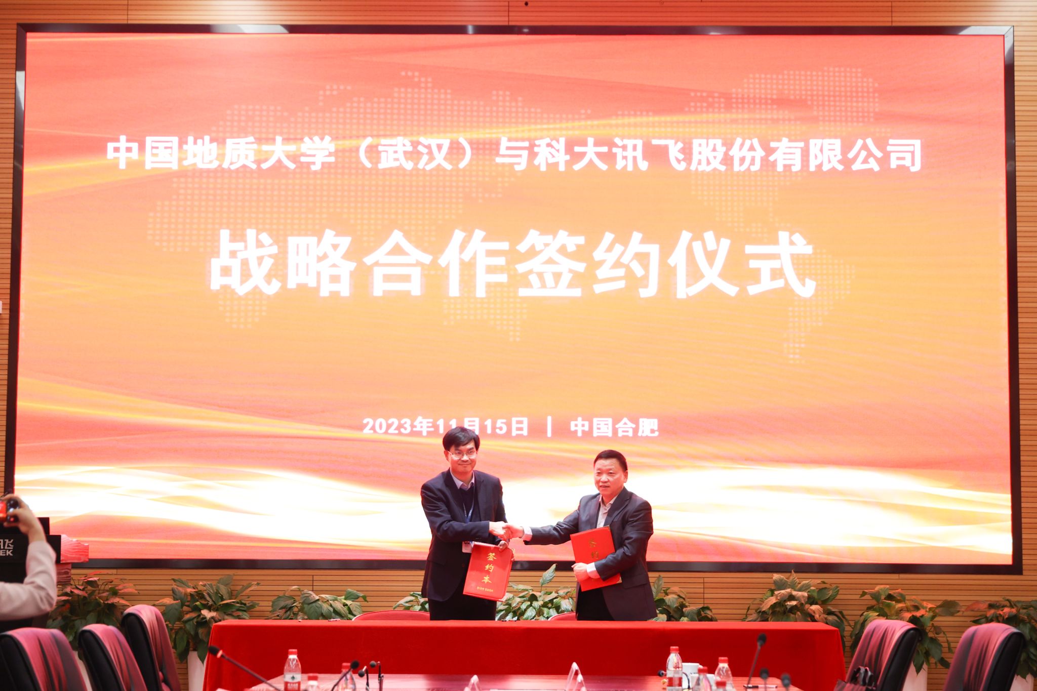 地大新闻网讯(通讯员 李琪 张磊)11月15日,米兰与科大讯飞战略合作签约仪式在科大讯飞合肥总部举行。校党委副书记王林清、科大讯飞股份有限公司高教产品线总经理陈红斌等参加仪式。