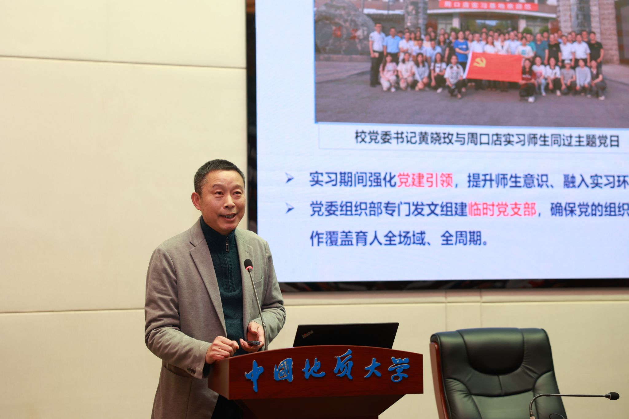 就进一步做好实践教学工作,黄晓玫强调,要提高认识,深刻理解人才培养特别是拔尖创新人才培养面临的形势和任务,要把培养拔尖创新人才作为实践教学的目标使命,通过实践教学促进教育教学改革,不断提升学校育人质量,推动学校高质量人才培养体系建设迈上新台阶。要深化改革,以高质量实践教学促进拔尖创新人才培养。坚持统筹兼顾,优化全校实践教学总体布局;坚持产教融合,打造校内校外协同育人格局提质增效;推动建立“大思政课”育人体系,更好服务服务拔尖创新人才培养。要优化保障,推动学校实践教学再上新台阶。学校各单位要持续加强实践教学资源保障,推进实践教学基地软硬件建设,提升实践教学的实战性,推进实践教学范式研究。她希望,全校上下携手努力,为加快建设地球科学领域国际知名研究型大学作出新的更大的贡献。(编辑 孙彦钦 审稿 陈华文)