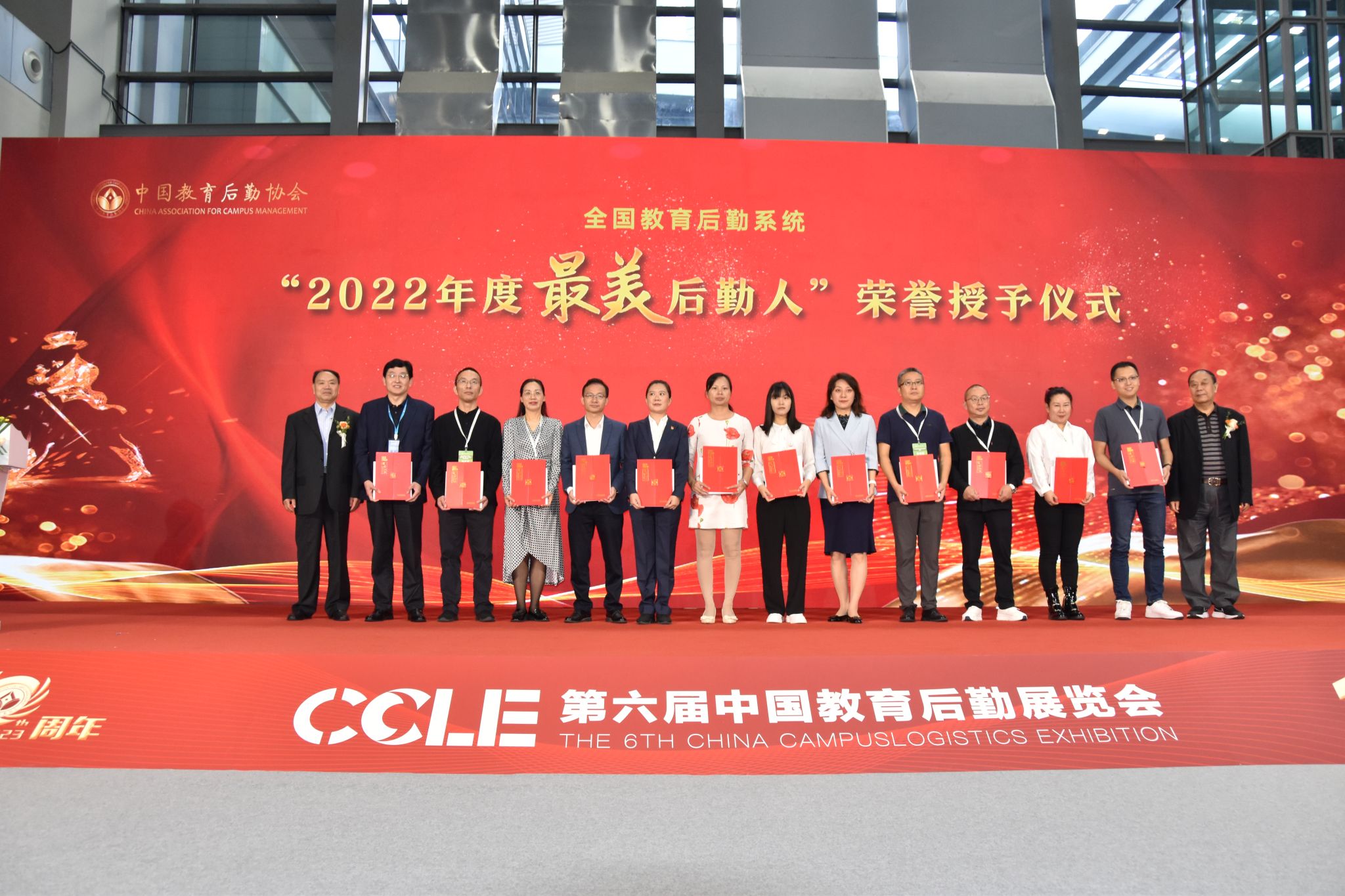 后勤保障部副部长林芸(左三)代表学校领奖