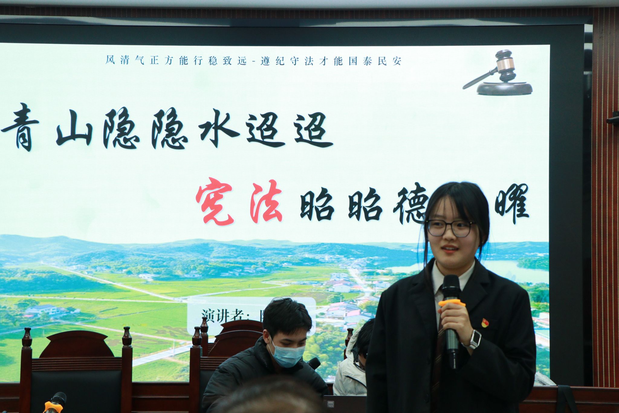 “学宪法 讲宪法”演讲比赛成功举办。学校第十届“学宪法,讲宪法”演讲比赛在北区模拟法庭如期举行。通过初赛选拔,全校10名同学进入决赛角逐。在演讲比赛中,同学们激情地分享自己和宪法的故事,让“宪法”真正走进生活,融入自己的成长历程。宪启民,法兴邦。这次演讲比赛在大家心中播下了宪法的种子,必将结出法治的累累硕果。