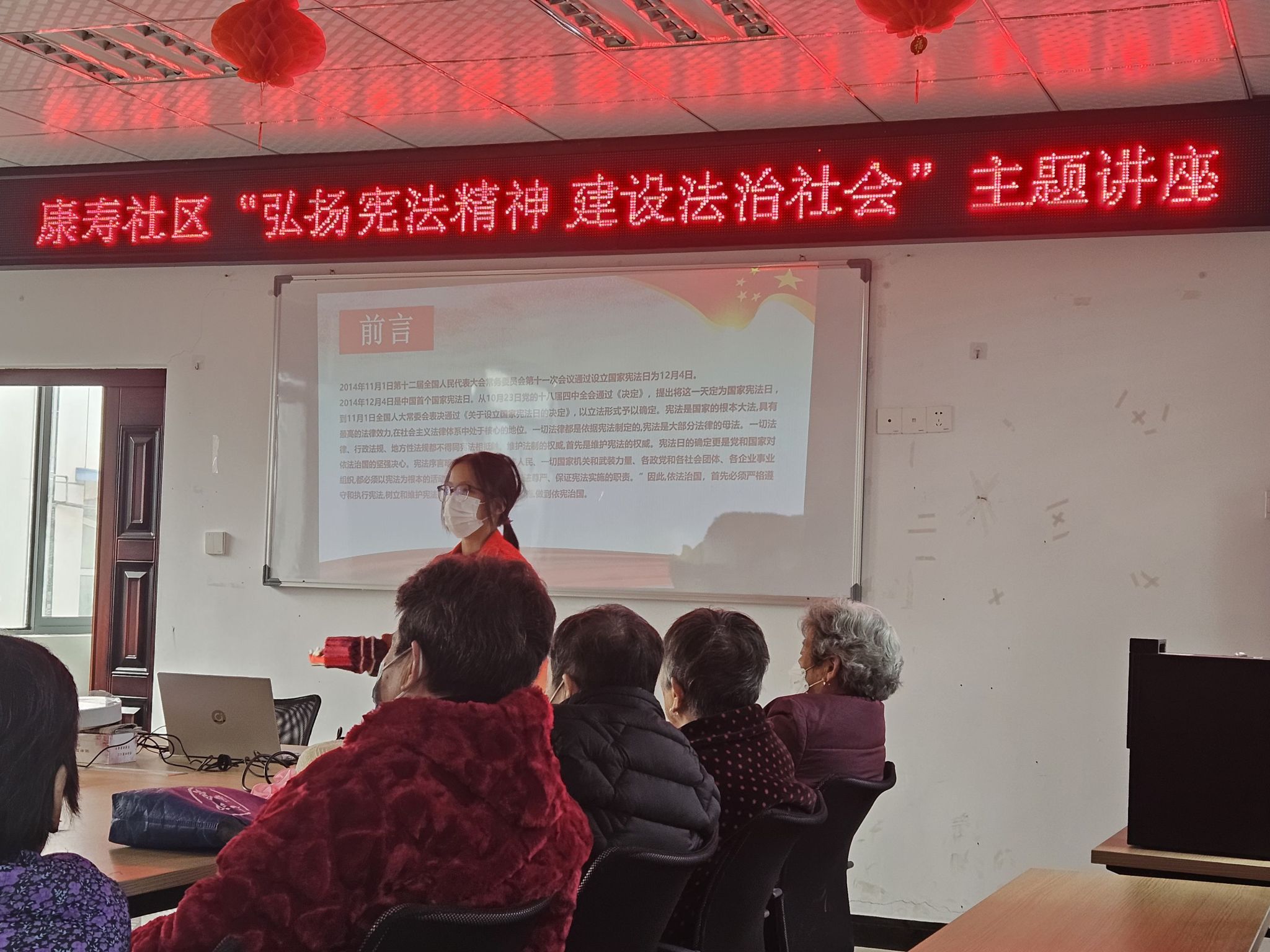 “宪法进社区”深受欢迎。“宪法进社区”活动通过法律志愿者宣讲宪法、发放传单并向居民讲解宪法相关知识的方式来提高社区群众的法治素养。图片、文字综合运用,充分调动了居民兴趣,问答互动更是活跃了现场气氛。志愿者们向社区群众普及了“国家宪法日”设立的由来,以生活实例深入浅出,具体阐述了宪法内容,让居民切身感受到宪法其实就在大家身边。