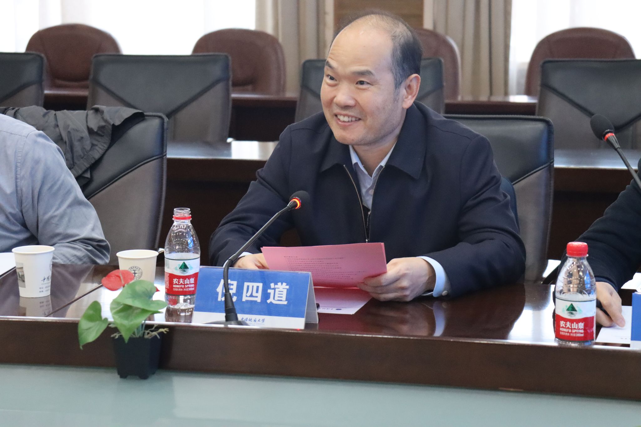 李四光学院常务副院长单华生,地球科学院副院长、李四光学院副院长朱宗敏围绕学院建设进展进行汇报。