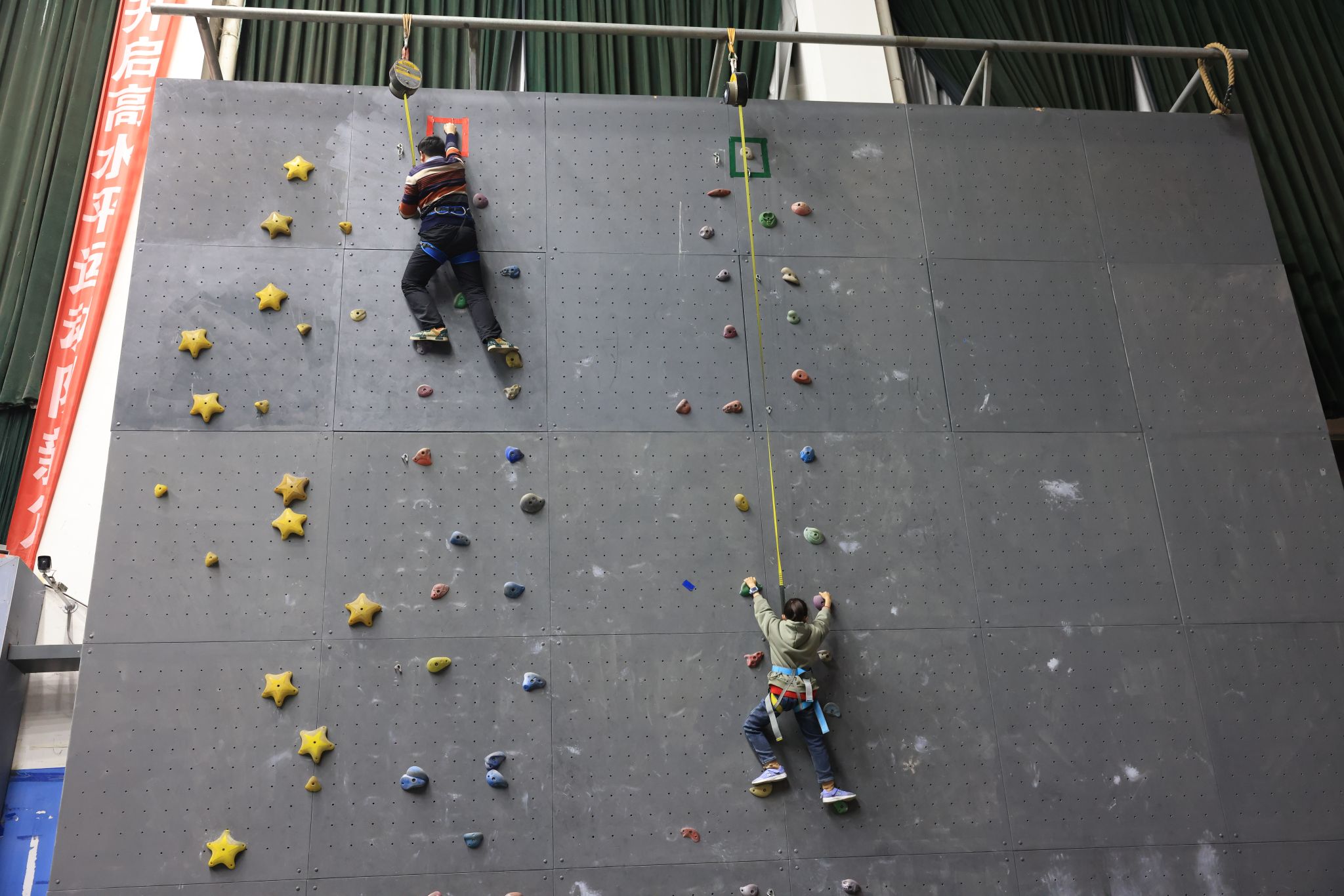 在南望山西区体育馆和攀岩馆,体育嘉年华活动热火朝天。游戏项目兼具趣味性和竞技性,有天旋地转、飞盘高尔夫、摸石头过河等8个趣味游戏项目,也有勇攀高峰和极限挑战。师生们在体育活动中享受乐趣、增强体质、健全人格、锤炼意志,以青春朝气迎接崭新的一年。