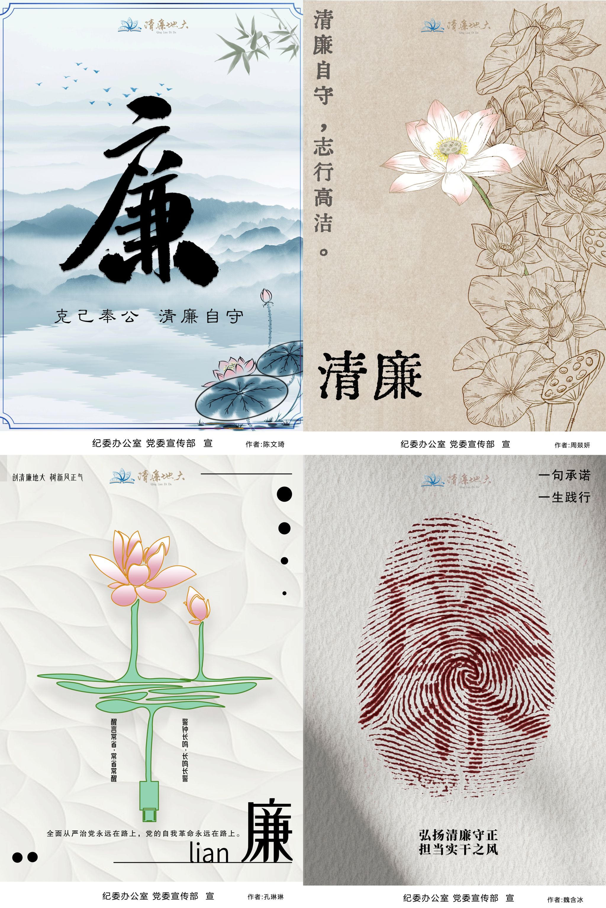 百余张海报以新颖的设计和独特的创意,展现着新时代青年对廉洁文化的认识和表达,吸引了师生驻足观赏、细细品读。