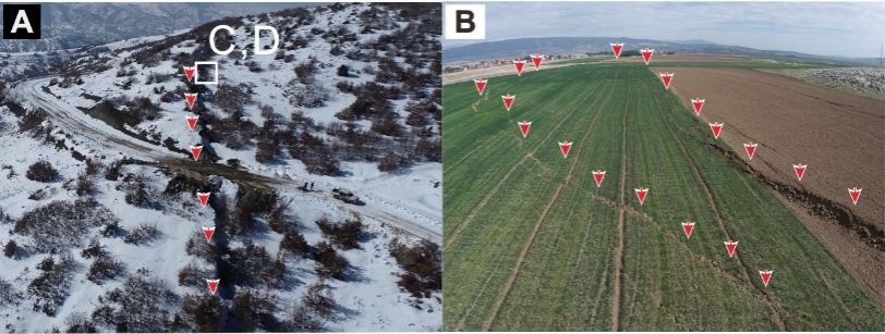 2023年2月6日的土耳其东部大地震,是该区本世纪以来破坏性最大的地震事件。蒂姆·科斯基(Timothy Kusky)教授研究团队在国家自然科学基金委特提斯重大研究计划重点项目支持下,自2017年开始在土耳其开展新构造和大地构造演化研究。首震发生后第十天,科斯基(Kusky)研究团队将项目组成员博士生孟建南派达震区,与项目组海外合作者成员土耳其中东技术大学地质工程学院院长、米兰客座教授埃尔丁·博兹库特(Erdin Bozkurt)教授共同开展震后地质调查。