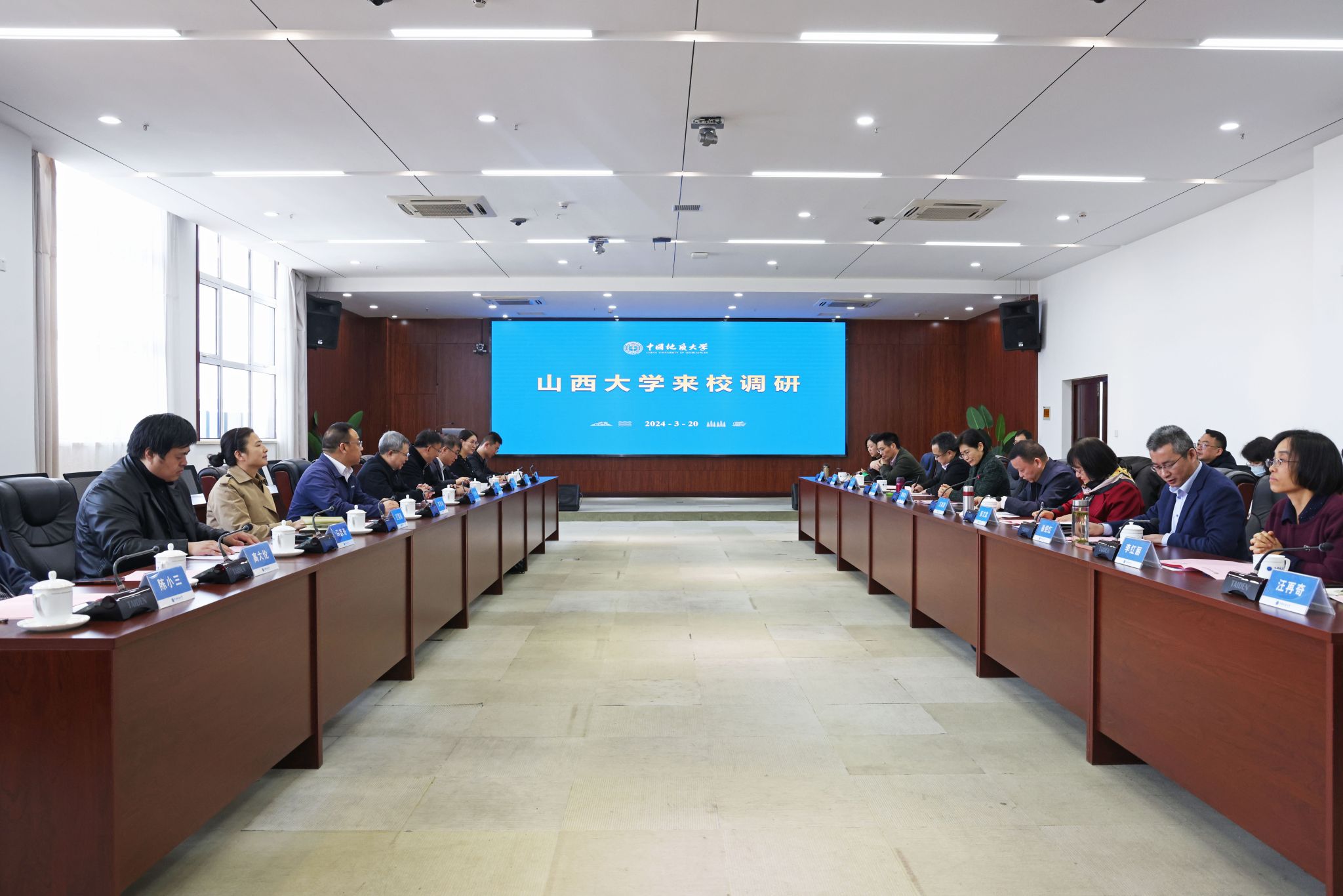 王仰麟介绍了山西大学的发展历史、办学规模、学科建设等情况。当前,山西大学正在大力推动“双一流”建设,对标国家和区域重大战略需求,有组织强化科研创新、有组织服务区域经济社会发展,他希望以此次调研为契机,学习借鉴地大“双一流”建设经验,加强双方的学者互访、科研项目合作、学术会议交流,共谋高质量发展。
