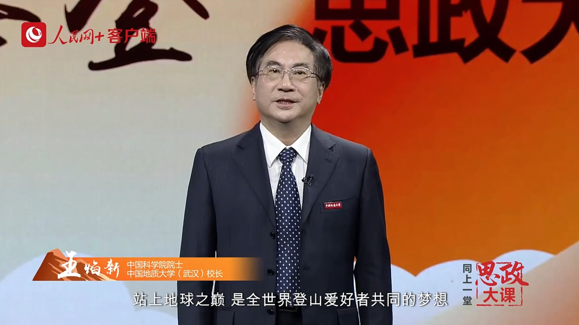 校长王焰新院士给大家讲述了地大这所登山届“黄埔军校”在过去60多年来,攀登珠峰的璀璨历史。从1960年王富洲率领的登山队,实现人类历史上首次从北坡登顶珠峰,“截至今天,已经有12位地大人25次登顶珠穆朗玛峰。”他说,“一定要把五星红旗插上珠穆朗玛峰”的信念,生动诠释了为国家而战、为使命而战的攀登者精神。