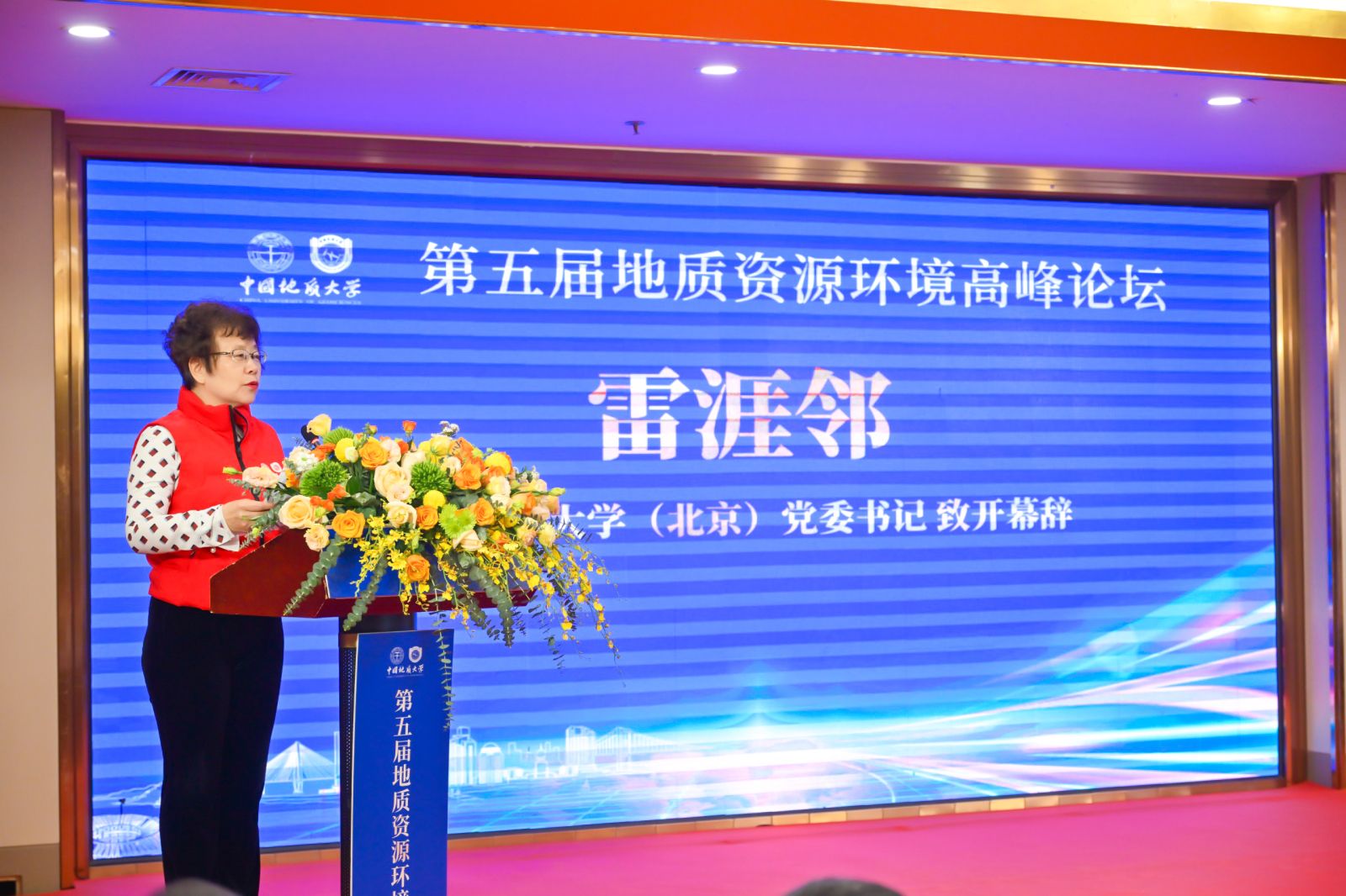 黄晓玫讲话。她高度赞扬了各位专家的精彩报告,向校友及嘉宾汇报了学校去年取得的成绩,并向广大校友和社会各界朋友长期以来对学校的关心支持表示感谢。她倡议,广大校友和学校师生员工要传承建校时的光荣使命,积极作为、挺膺担当,急国家之所急、想国家之所想,聚焦资源能源安全、生态文明建设、防灾减灾等重要战略领域开展工作,为推动基础研究、技术创新、经济发展,建设美丽中国、宜居地球作出地大人应有的贡献。她提出,全体校友要进一步团结协作,强化“命运共同体”意识,创新、健全、完善工作方式和工作机制,共同搭建助力学校和校友个人健康持续发展、共享资源机遇的平台,不断培养和汇聚国家所需关键领域的人才和科创资源,不断加强学术前沿与行业产业的紧密联系,形成地大合力,不断巩固和强化地大在自然资源行业的地位,在找矿突破战略行动和保障国家资源能源安全方面发挥地大人不可替代的作用。(来源 校友与社会合作处 编辑 孙彦钦 审稿 陈华文)