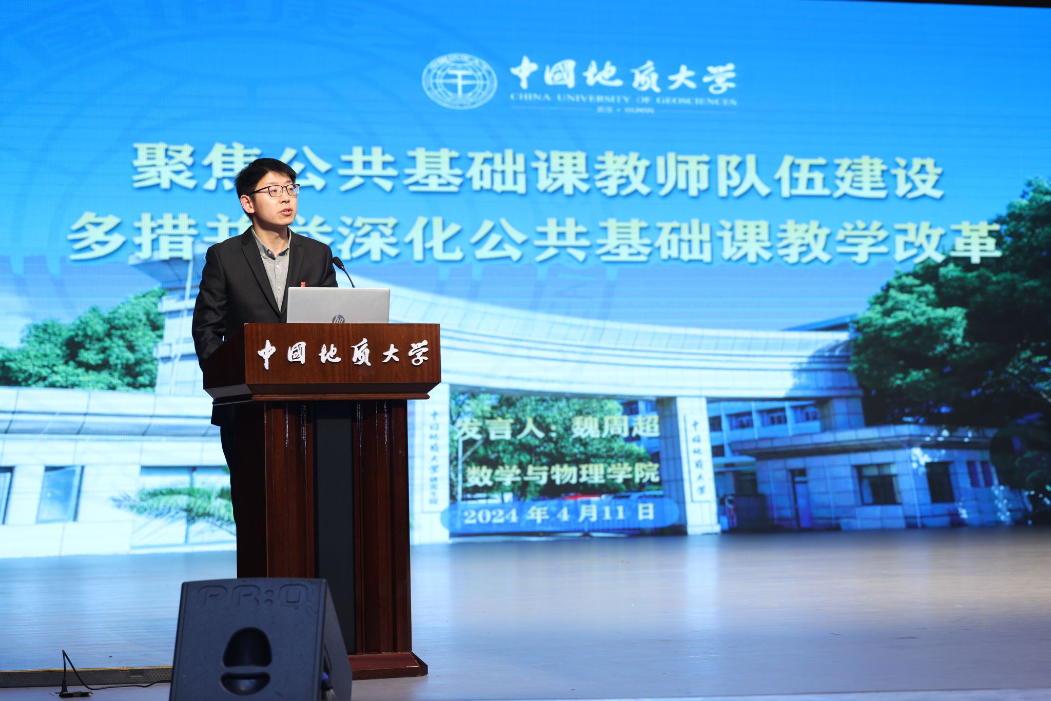 数学与物理学院魏周超教授以《聚焦公共基础课教师队伍建设,多措并举深化公共基础课教学改革》为题交流发言