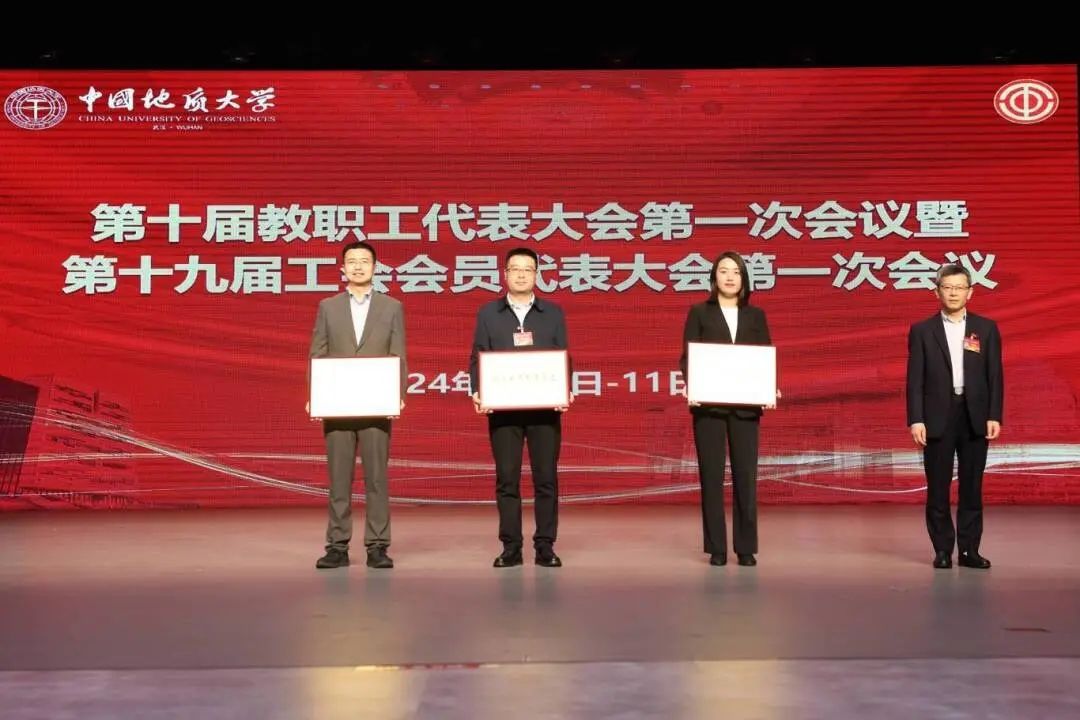 会议对2023年“湖北五一劳动奖章”获得者、“第四届最美地大教工”,九届五次教代会“提案优秀组织单位”“提案办理先进单位”“优秀提案”等先进集体和个人进行表彰,校领导分别为获奖单位代表和个人颁奖。
