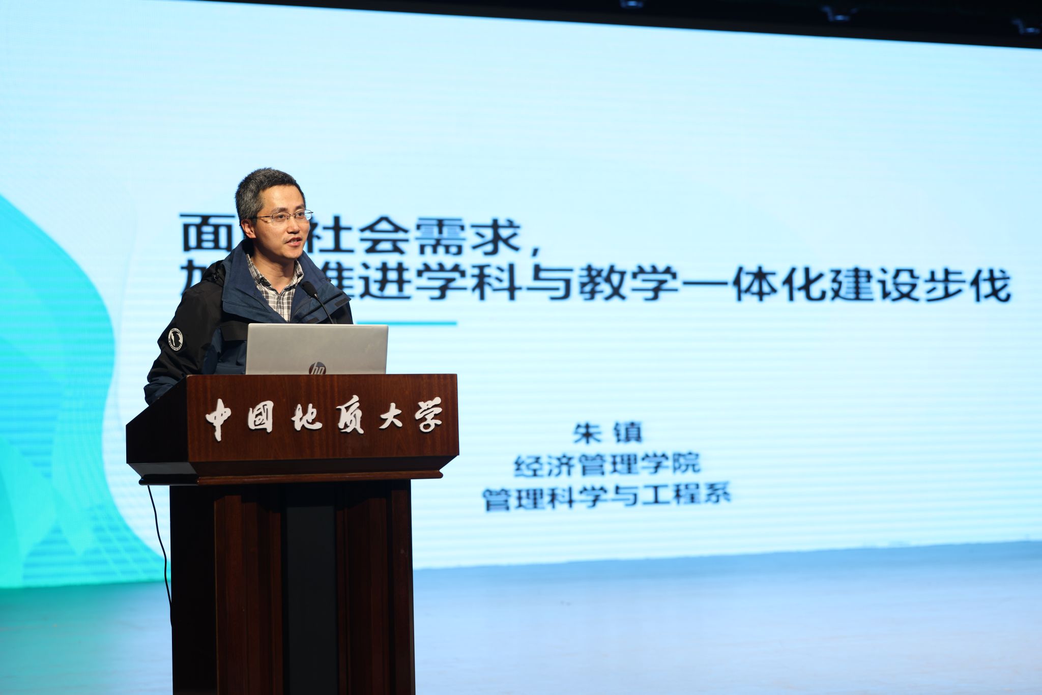 经济管理学院朱镇教授以《面向社会需求,加快推进学科与教学一体化建设步伐》为题交流发言