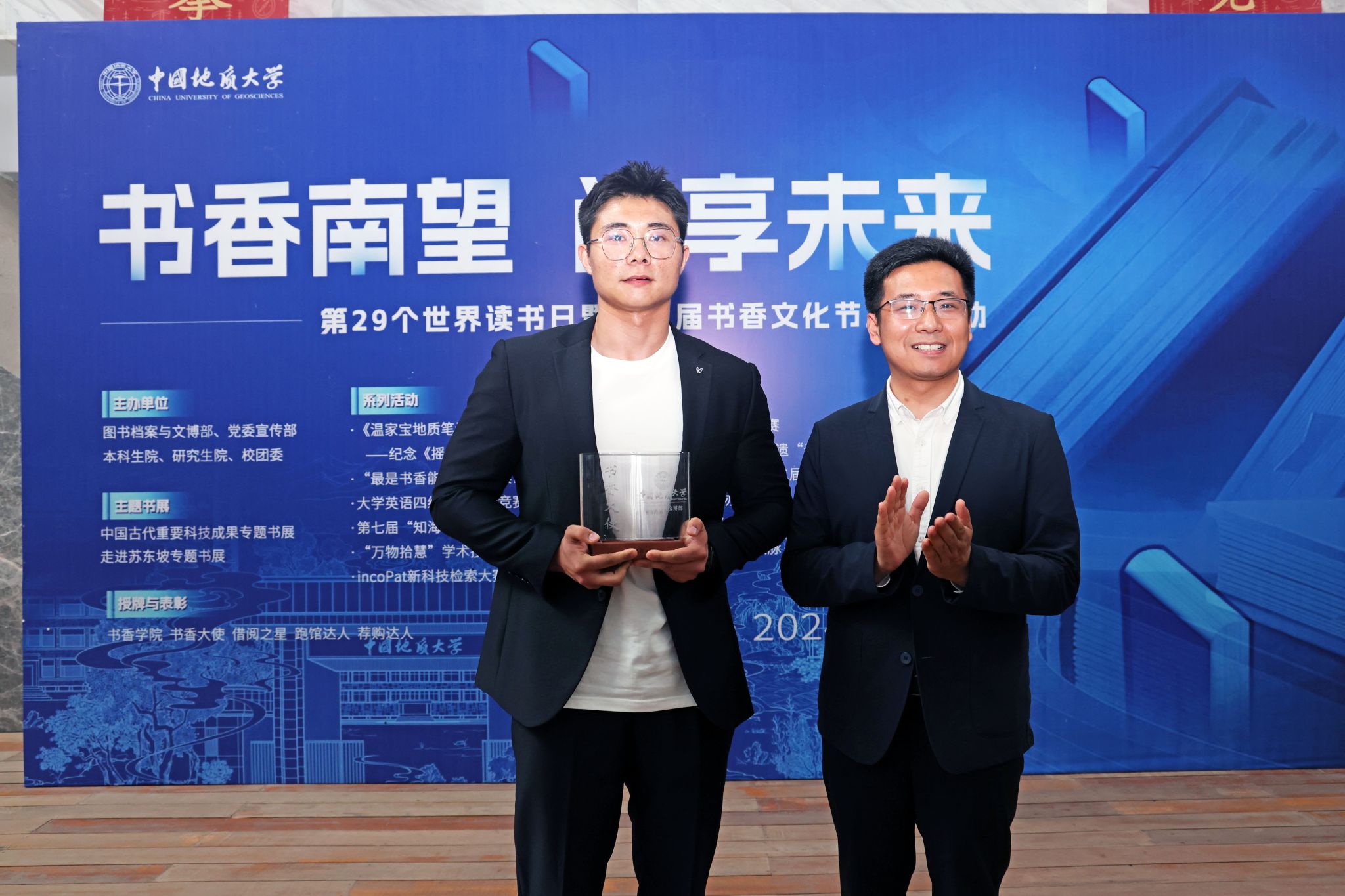 校团委书记朱丹为“长江学子”、地球科学学院2020级本科生任阔颁发“书香大使”聘书。
