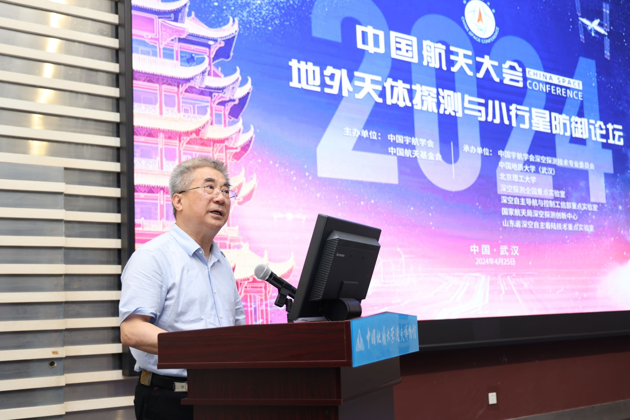 北京理工大学特聘教授、国际宇航科学院通讯院士、中国宇航学会深空探测技术专业委员会常务副主任崔平远致辞。