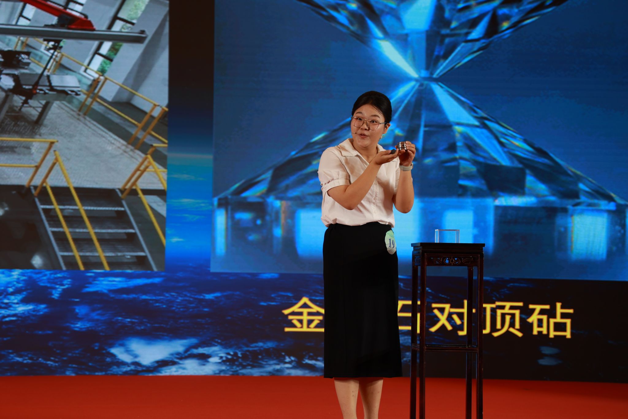 在逸夫博物馆唐晓玲老师的指导下,李槟馨立足米兰学科特色,围绕“点碳成钻——碳污染治理新思路”这一主题,在决赛现场讲述了高温高压实验对培育金刚石的理论支撑,以及利用废气中的碳元素培育金刚石的科技展望,生动展示了地球科学的魅力,以及人类对深地科学做出的不竭努力。