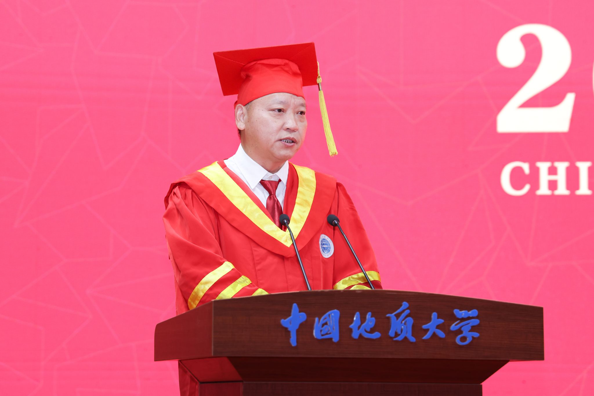 李建威叮嘱即将奔赴星辰大海的毕业生们,“象牙塔”外迎接大家的是更加纷繁复杂、挑战与机遇并存的世界,但坚定自信、脚踏实地走好自己的路,始终是战胜一切困难的“制胜法宝”。自信是自我认同基础上的自我确信,是物质世界里的自我驱动,是精神世界中的自我实现。他希望同学们秉承地大精神、永葆赤子情怀、坚定专业和文化自信,在拥抱伟大时代中涵养自信之源,在传承地大精神中增强自信之基,在砥砺奋进力量中绽放自信之美,以点滴奋斗谱写最美丽的青春,在建设中国式现代化的道路上挺膺担当,在实现中华民族伟大复兴的征程中成就梦想。