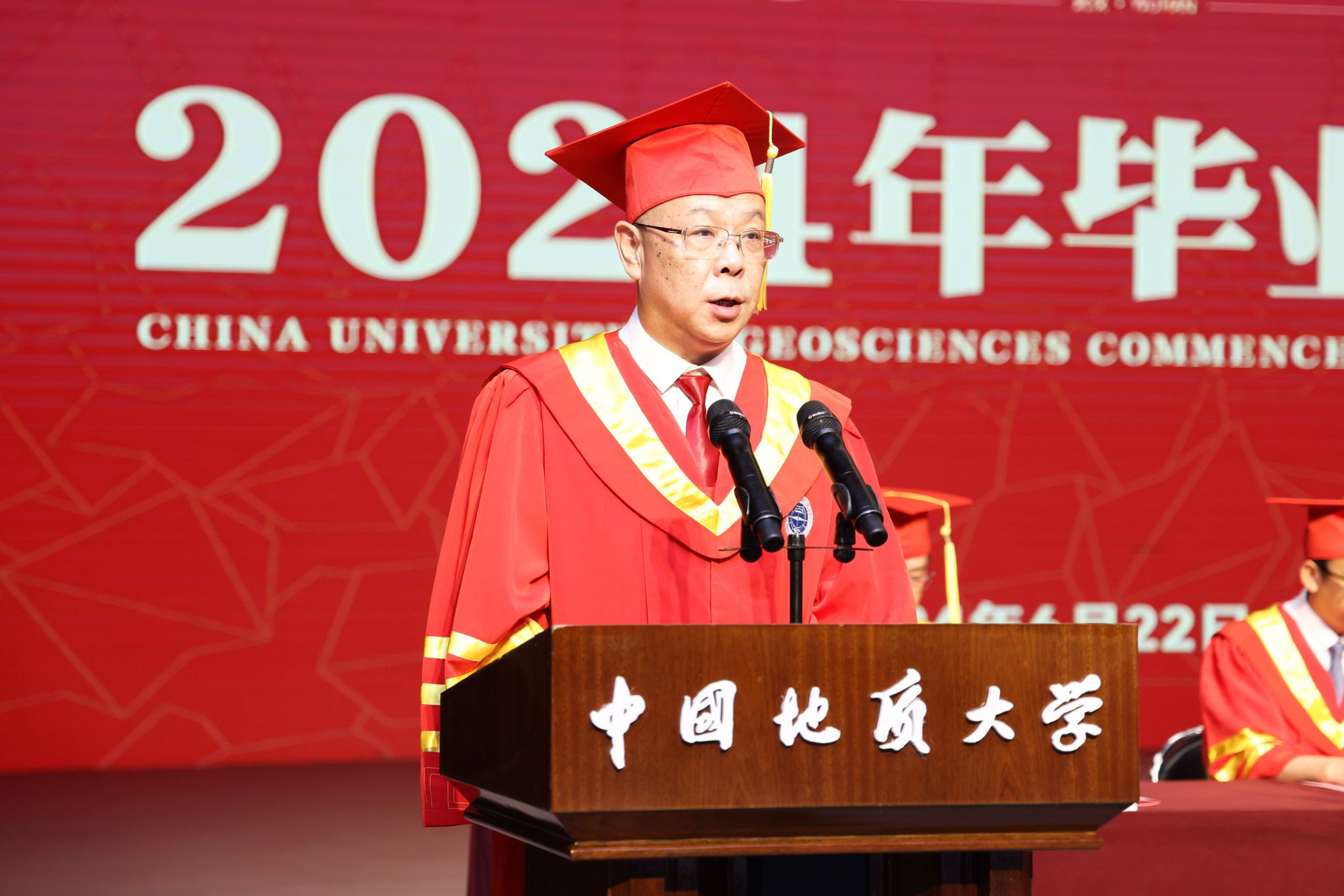 校长李建威以《挑战与自信》为题,深情寄语2024届毕业生。他说,考验之中强筋骨,风雨之后见彩虹。四年前,突如其来的新冠肺炎疫情,给同学们的求学之路带来了前所未有的困难与挑战,但对于“胸中有丘壑、眼里存山河”的地大人来说,这些反倒激励大家不断突破自我,学校为大家骄傲、为大家自豪。