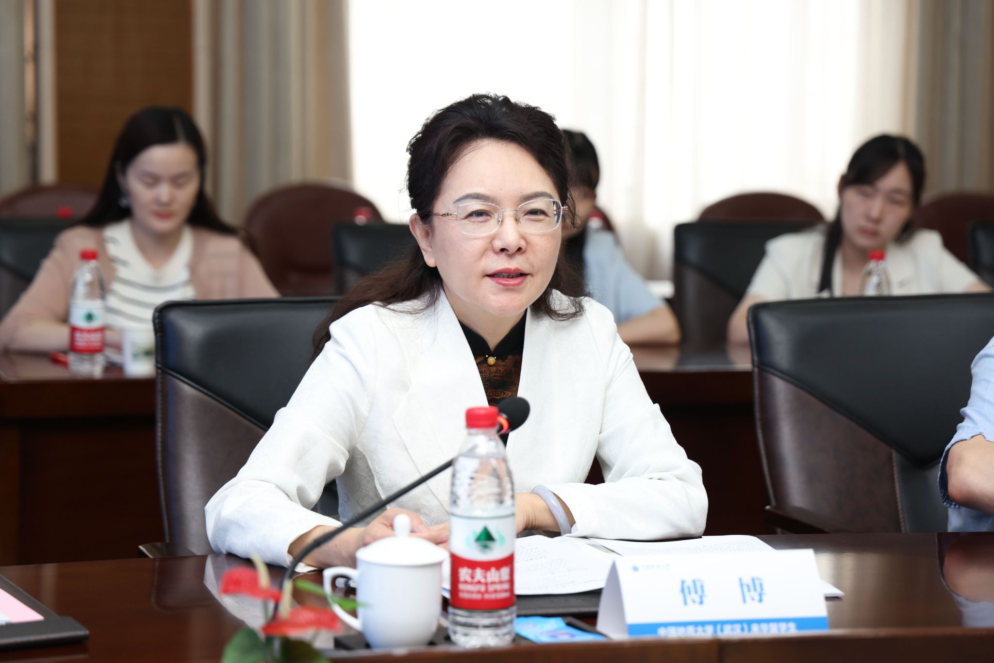 中国教育国际交流协会副秘书长傅博在现场审查说明会上讲话表示,教育部高度重视来华留学生高等教育质量认证工作,希望地大以此次再认证为契机,将大外事格局贯彻落实到学校的教育教学服务全链条,让全球优质资源融入育人实践,让国际化理念融入制度文化,让跨文化体验融入校园生活,以来华留学教育助力学校国际化办学。