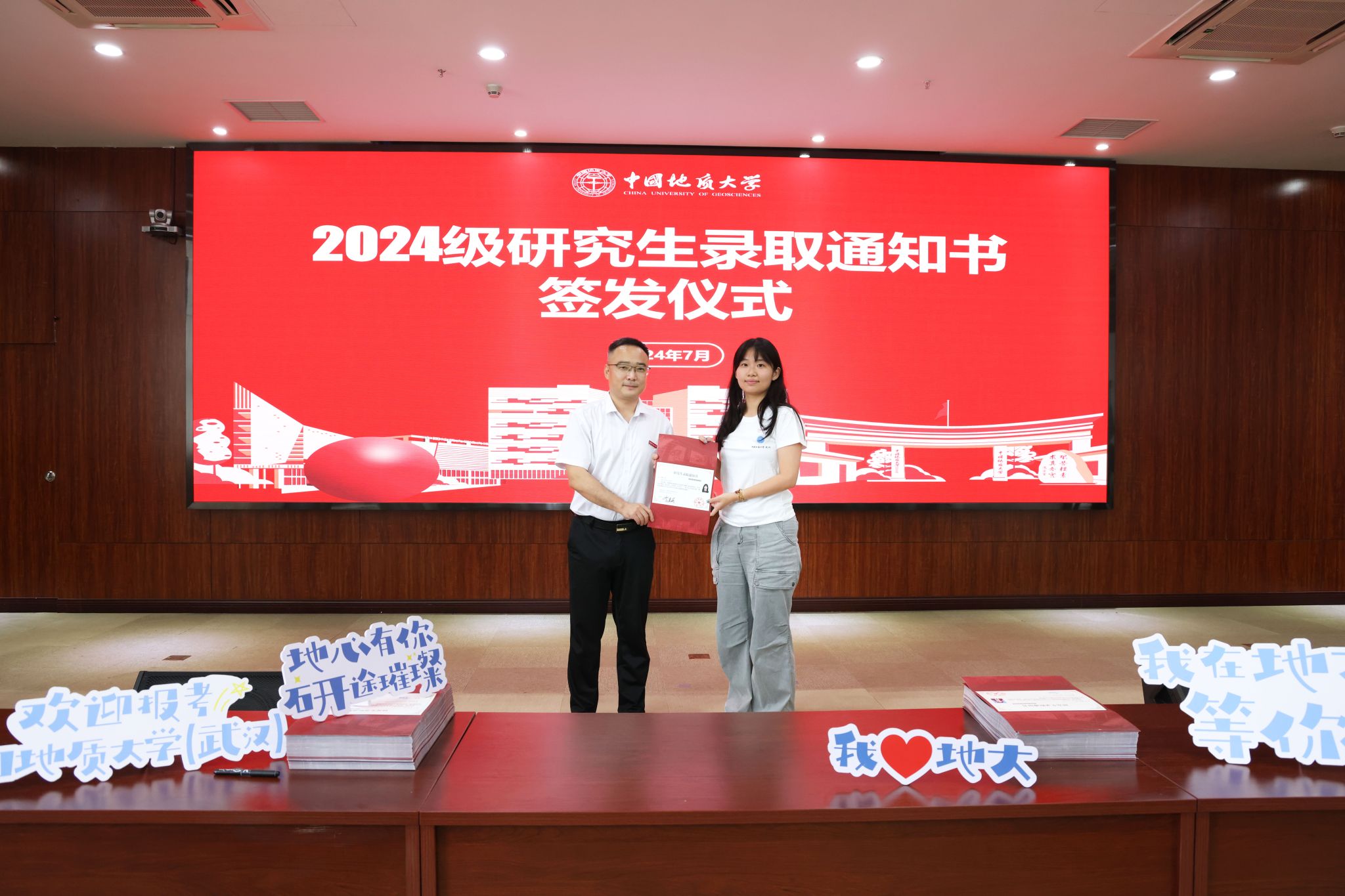 李建威亲笔签发2024级研究生录取通知书,向全体研究生新生表示祝贺,并寄语新生:“来地大探索科学的奥秘,掌握过硬的本领,勇攀科学的高峰和人生的高峰”。