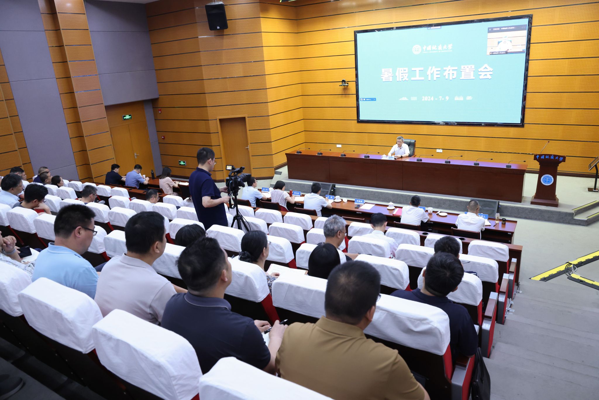 李建威布置暑期工作。他指出,要静下心来“沉下去”,切实转变作风、加强斗争本领,争分夺秒抓学习、强本领,真抓实干转作风、提效能,要进一步推进党纪学习教育走深走实,巩固学习成果,做到学纪、知纪、明纪、守纪,将学习的效果内化为干事创业的实际行动和创新能力,助推学校高质量发展;要扑下身子“扎进去”,锚定重点任务、从早从细落实,要聚焦改革攻坚这一“难事”,抓紧推进本科教育教学审核评估这个“急事”,筹办好周口店建站 70 周年发展大会这个“盛事”,抓好科技创新和开放办学这个“要事”,用心用情办好师生关注的一些“实事”;要扛起责任“顶上去” ,强化服务保障,护航平安假期,要全力服务好招生录取工作,把好入口关,全力服务好人才培养环节,把好质量关,全力服务好更高质量就业,把好出口关,全力服务好开学筹备工作,把好协同关,全力服务好暑期校园运转,把好安全关。他强调,各单位要时刻绷紧安全之弦、守牢安全底线,要做实安全教育工作,守好安全主阵地,开展全面安全检查排查,以责无旁贷、重任在肩的使命感抓好安全弦。