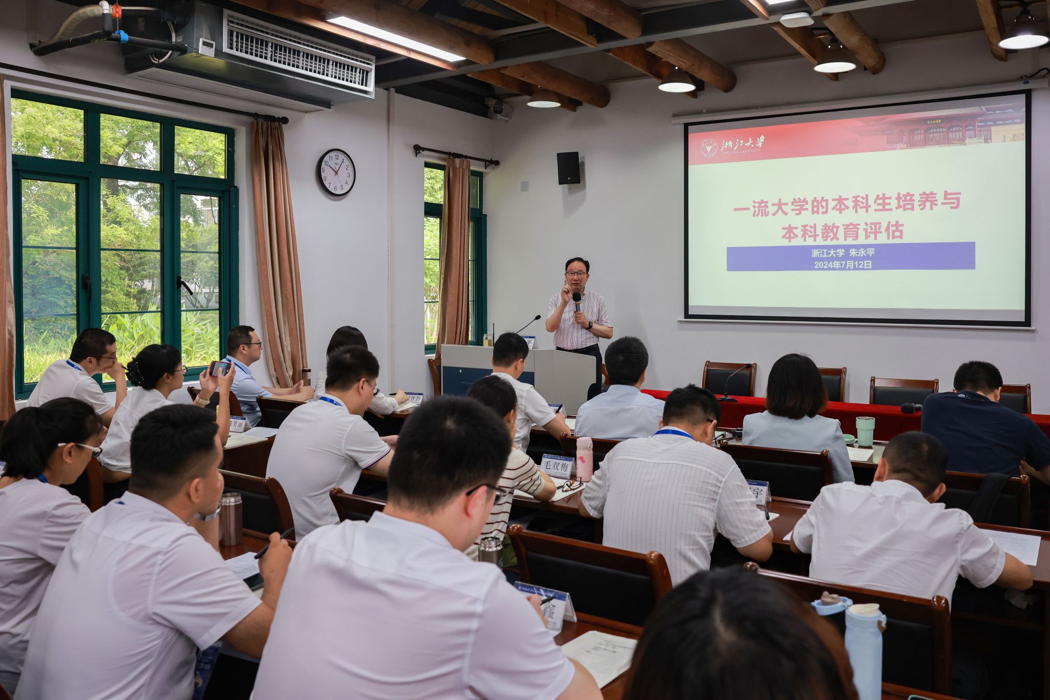 开班第一课,由浙江大学朱永平教授带来题为《一流大学的本科生培养与本科教育评估》的专题报告。朱永平教授从“人工智能时代,大学的存在价值和教师的作用发挥”这一话题引入,探讨如何运用人工智能更好地推动高校人才培养工作。他从一流大学是“刚需”、学科建设是“龙头”、专业建设是“王道”、教学评估是“抓手”、人才队伍是“保障”五个方面进行阐述,突出强调了办好一流大学的重要性和必要性,如何做好学科建设、专业建设和本科教育评估等,帮助参训学员对做好高校人才培养工作产生更加深刻的认识和思考。