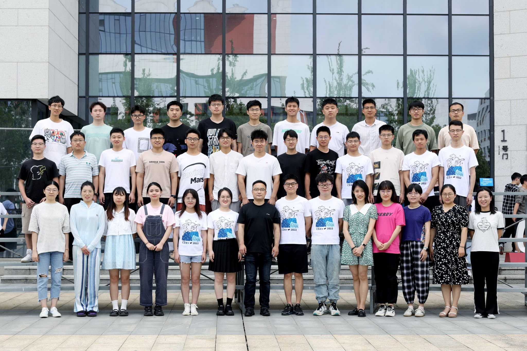 校长李建威校长和获奖代表王玥玮副教授、蒋恕教授、张宏斌副研究员