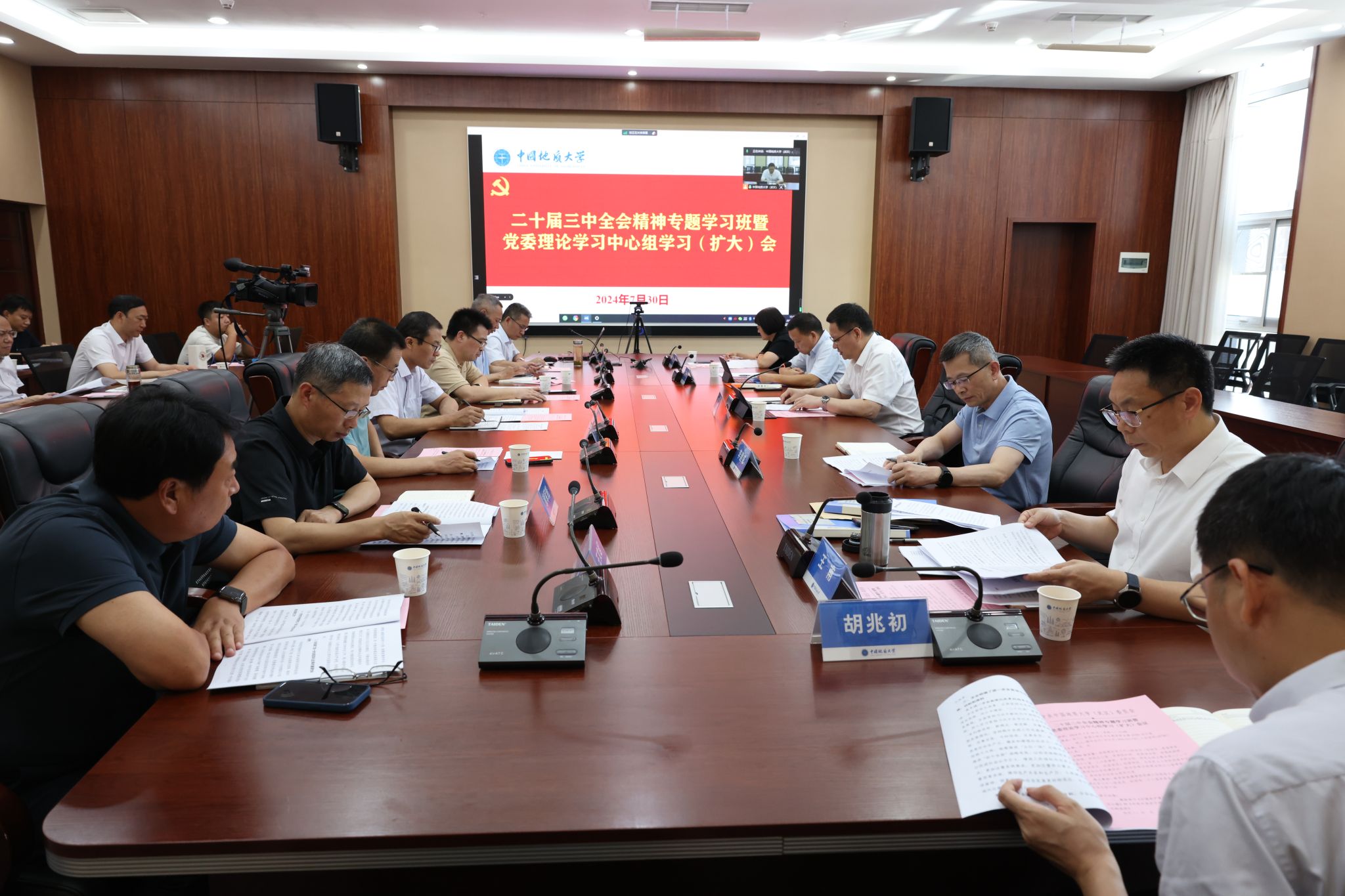 地大新闻网讯 (记者 许小康 摄影 王俊芳)7月30日,学校举行二十届三中全会精神专题学习班暨党委理论学习中心组学习(扩大)会议。党委书记刘杰主持会议并领学全会精神,传达党中央、教育部党组、湖北省委关于深入学习贯彻全会精神有关文件和会议精神,对全校学习宣传贯彻落实全会精神进行部署、全面动员。