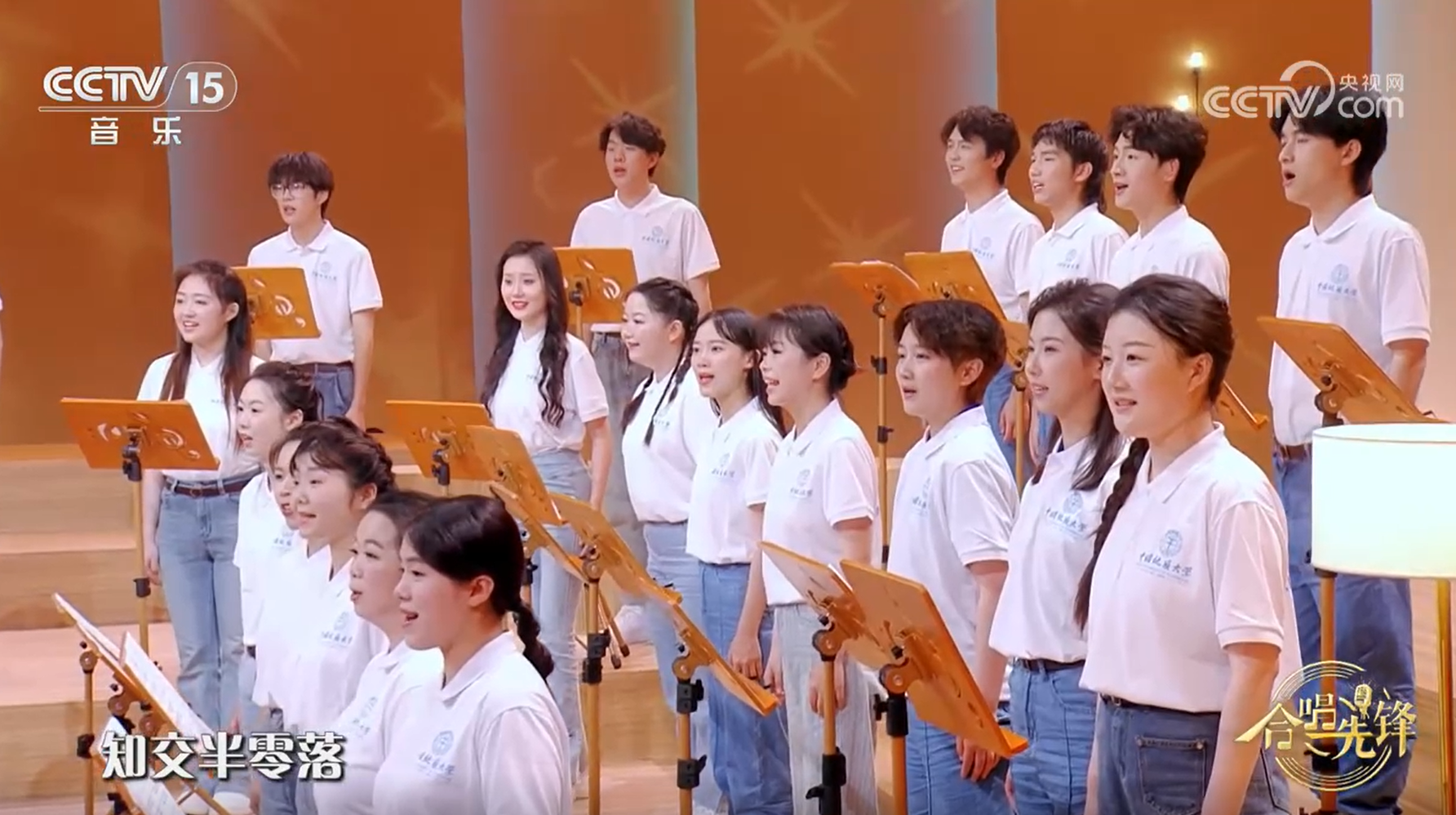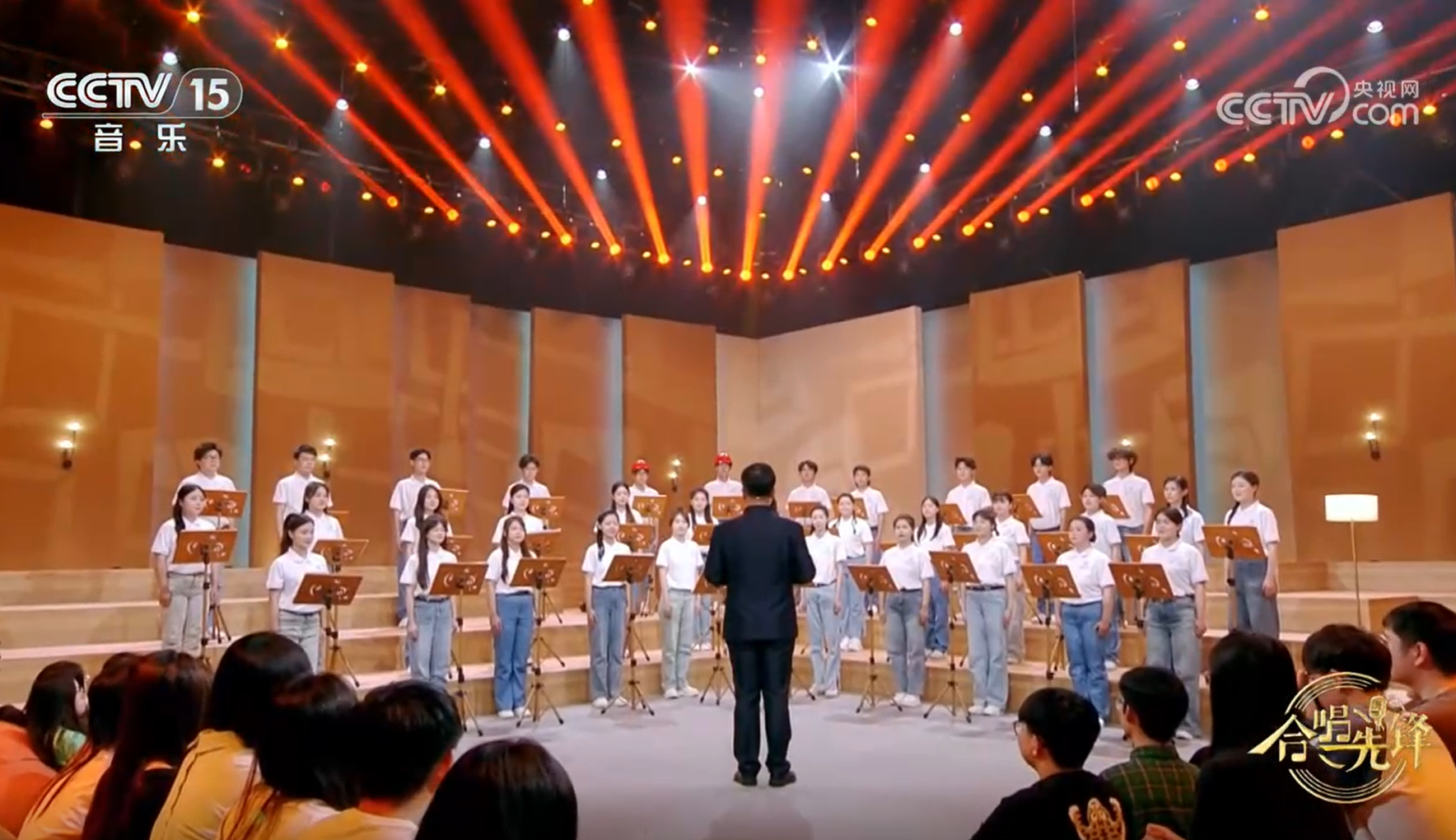 节目中,余磊老师指挥,星空合唱团的同学们齐声高唱《勘探队员之歌》,令在场的观众们心潮澎湃。
