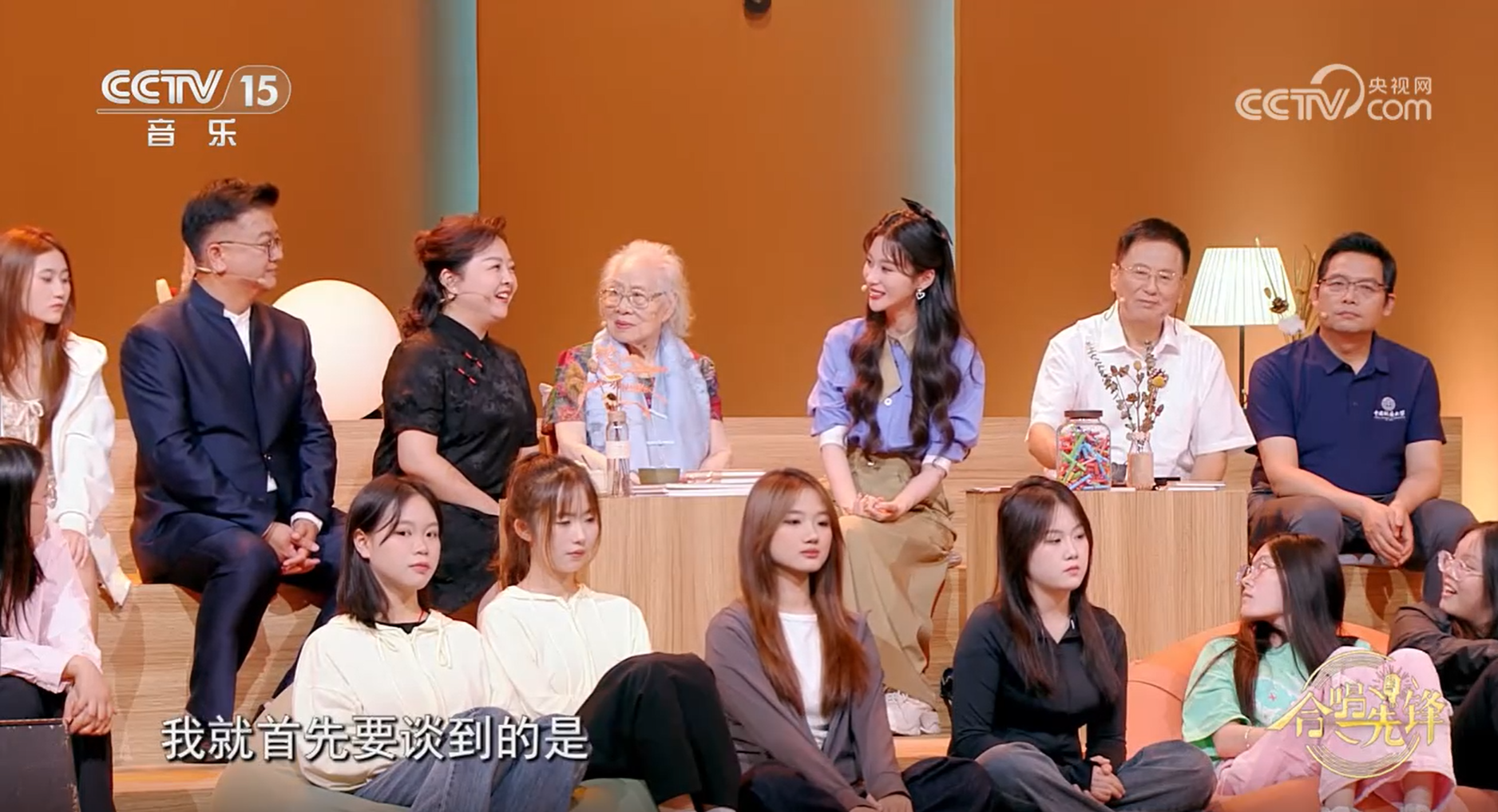 整个节目由艺术与传媒学院师生主导。节目现场,特邀嘉宾——著名女高音歌唱家、声乐教育家、中央音乐学院郭淑珍教授,与师生们面对面交流,分享了她对音乐艺术的理解以及对青春的回忆。她勉励同学们:“只要努力就会有收获,只要努力就会有成绩,青年强国家就强!”