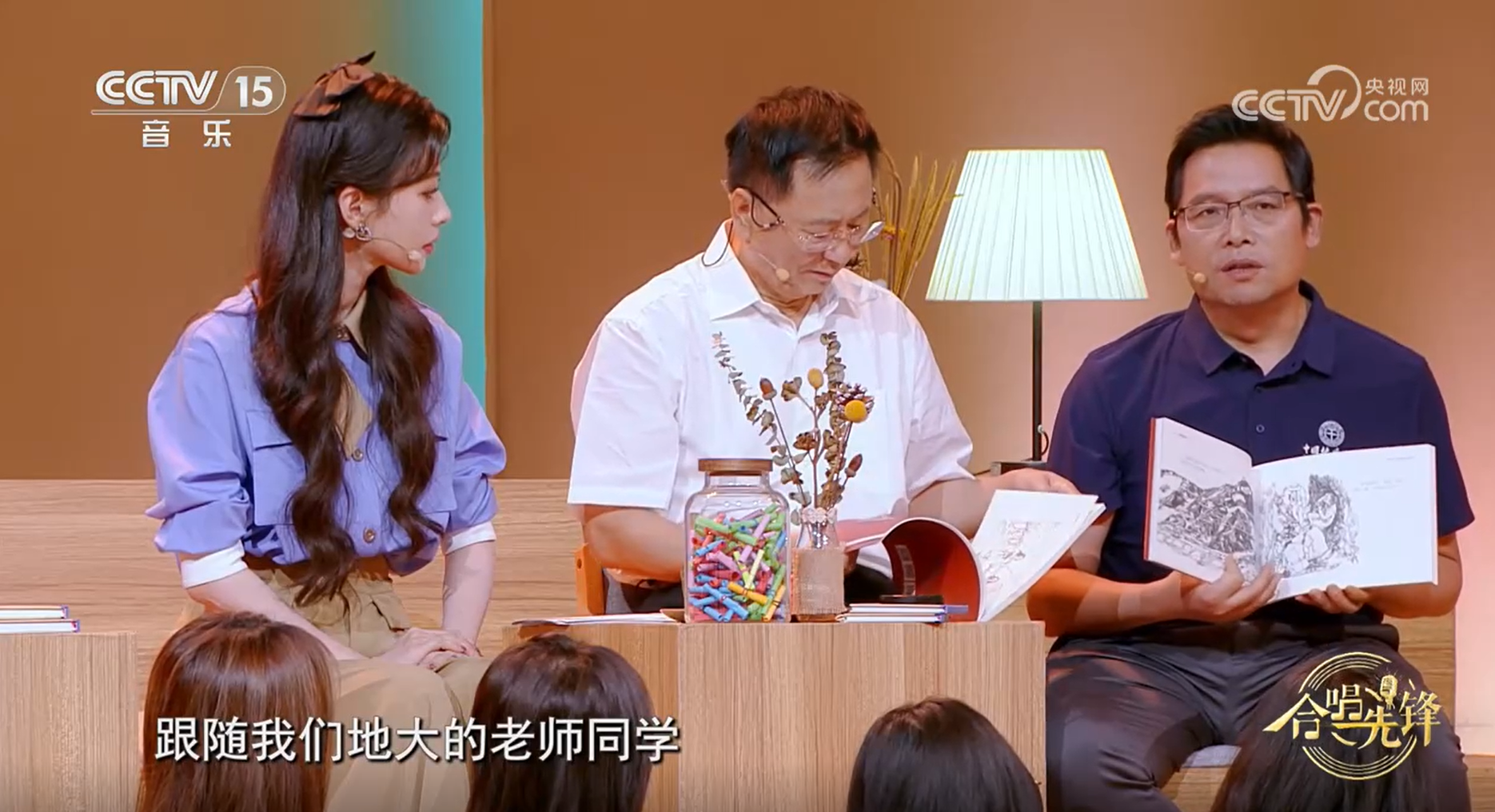 教育部地学指导委员会副主任、中国矿联原副会长、总工程师刘玉强校友,米兰milan官方网站(武汉)艺术与传媒学院编审、中国地质作家协会副主席陈华文,艺术与传媒学院音乐表演系副主任余敏,艺术与传媒学院音乐系教师、星空合唱团指挥余磊,带领星空合唱团一同亮相,向全国的观众们讲述地大的故事。