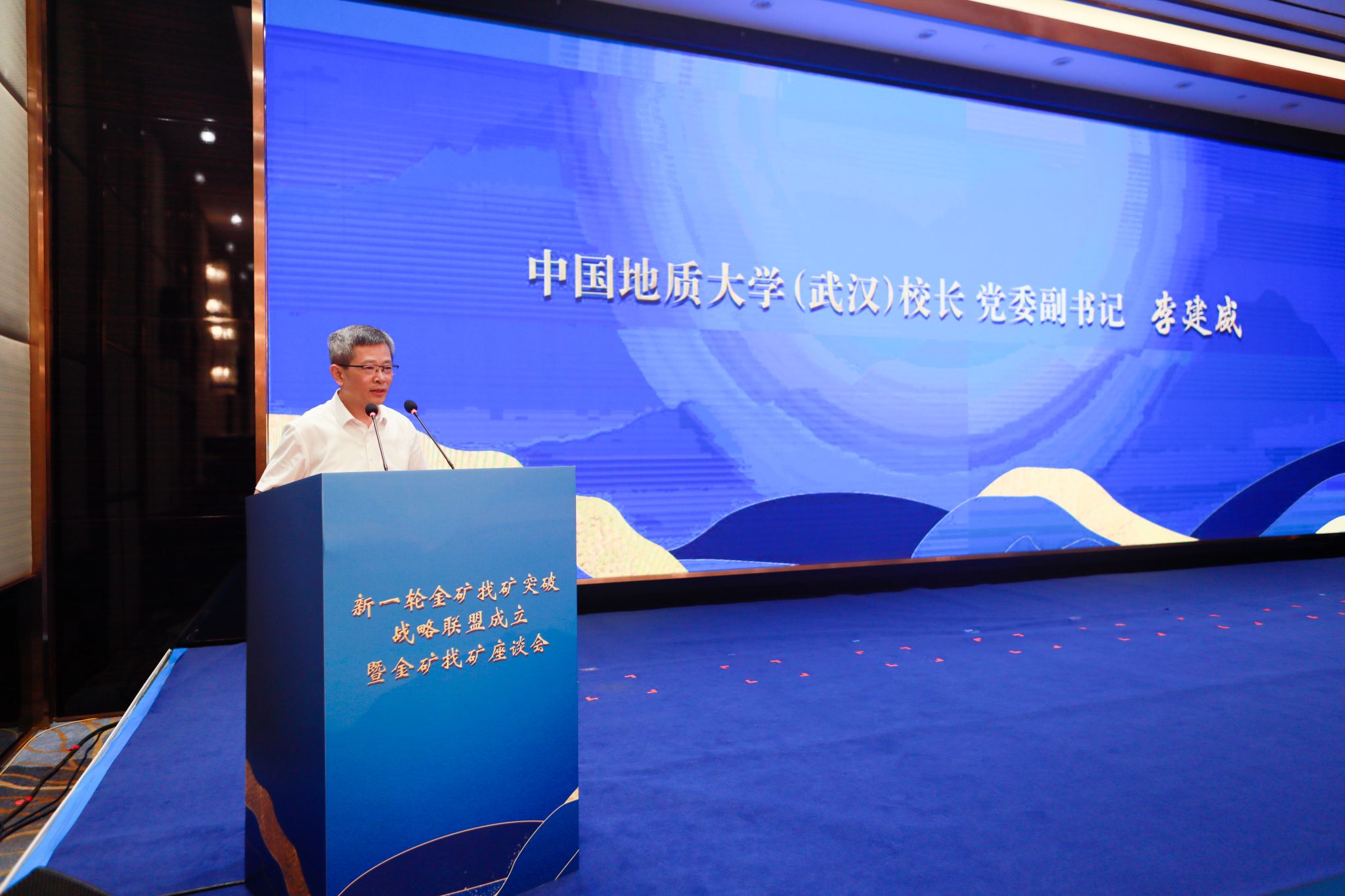 李建威代表学校向新一轮金矿找矿突破联盟的成立表示祝贺,对长期关心支持学校事业发展的联盟各成员单位表示感谢。他说,学校始终坚持“四个面向”,聚焦世界地质科技前沿和矿产资源国家重大需求,针对成矿找矿的关键科学问题和技术难题开展多学科交叉研究,与行业单位和产业部门开展了长期卓有成效的合作,在成矿理论、成矿模式、成矿规律、地质调查和矿产勘查方法技术等方面取得了丰富的研究成果,针对重要成矿带、覆盖区、老矿区深部和外围的找矿预测和勘查评价也取得了令人瞩目的成绩。他谈到,山东省是国内最大、世界第三大黄金产地,是新一轮找矿突破战略行动最重要的金矿找矿区域。长期以来,学校科研团队在山东开展了包括金矿勘查在内的地质矿产科研和找矿工作,为山东金矿找矿增储、金矿研究水平的提升做出了重要贡献。他表示,新一轮金矿找矿突破战略联盟的成立具有重要的现实意义和长远意义,为推动实现政产学研用深度融合提供了新的有效途径。作为联盟成员单位,地大将始终胸怀能源资源安全“国之大者”,与各联盟成员单位一道聚焦金矿床成矿关键科学问题和找矿技术难题,开展协同创新和联合攻关,力争产出一批高水平成果,将其转化为赋能金矿找矿突破的新质生产力,推动山东金矿找矿和黄金产业的高质量发展。