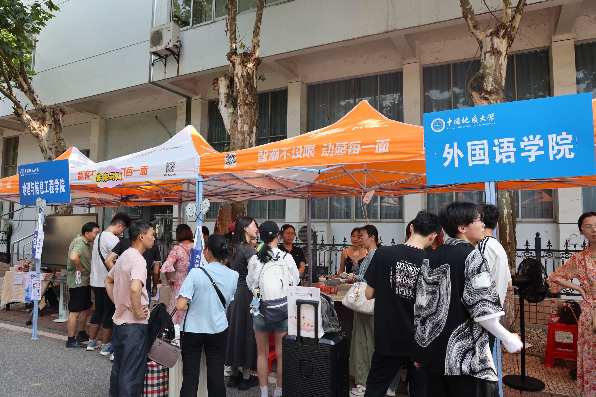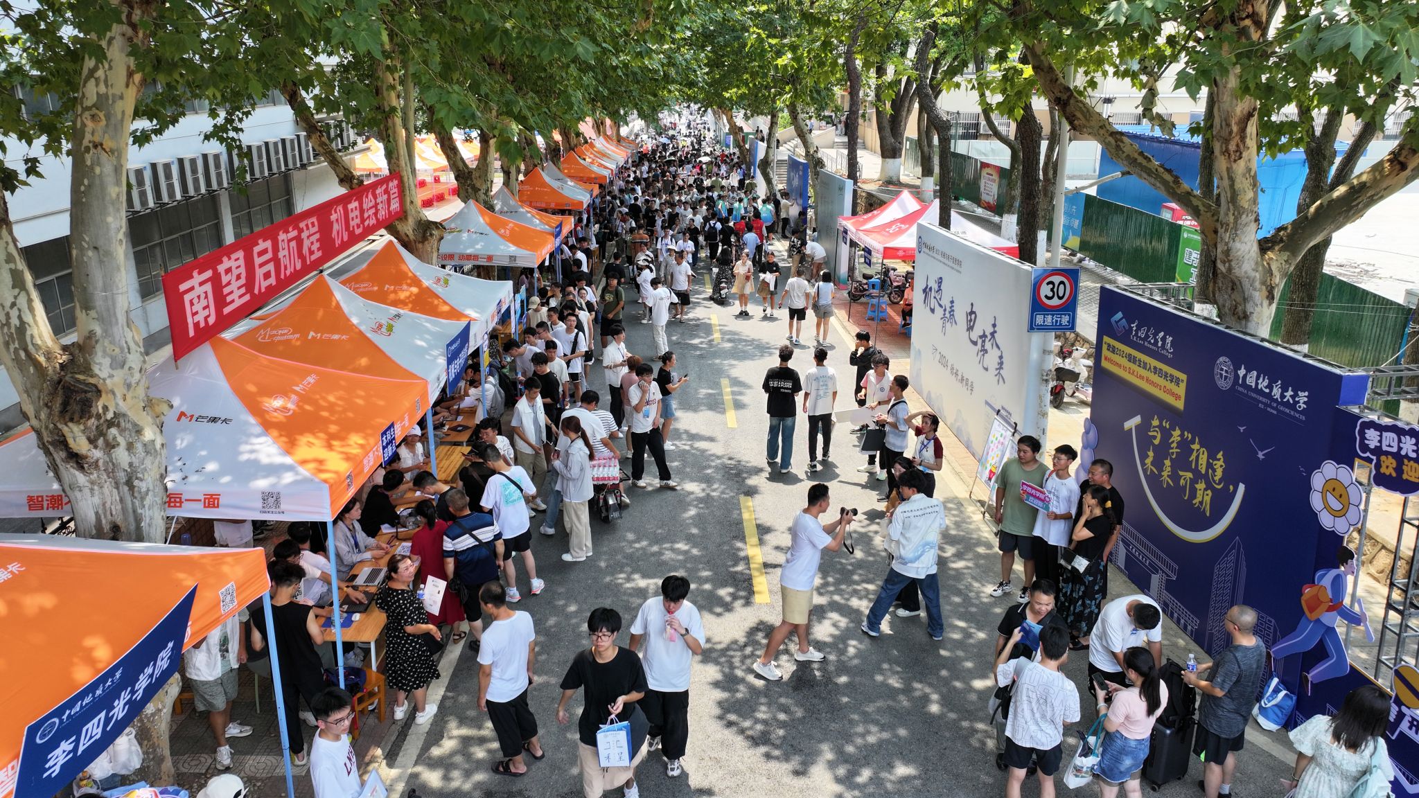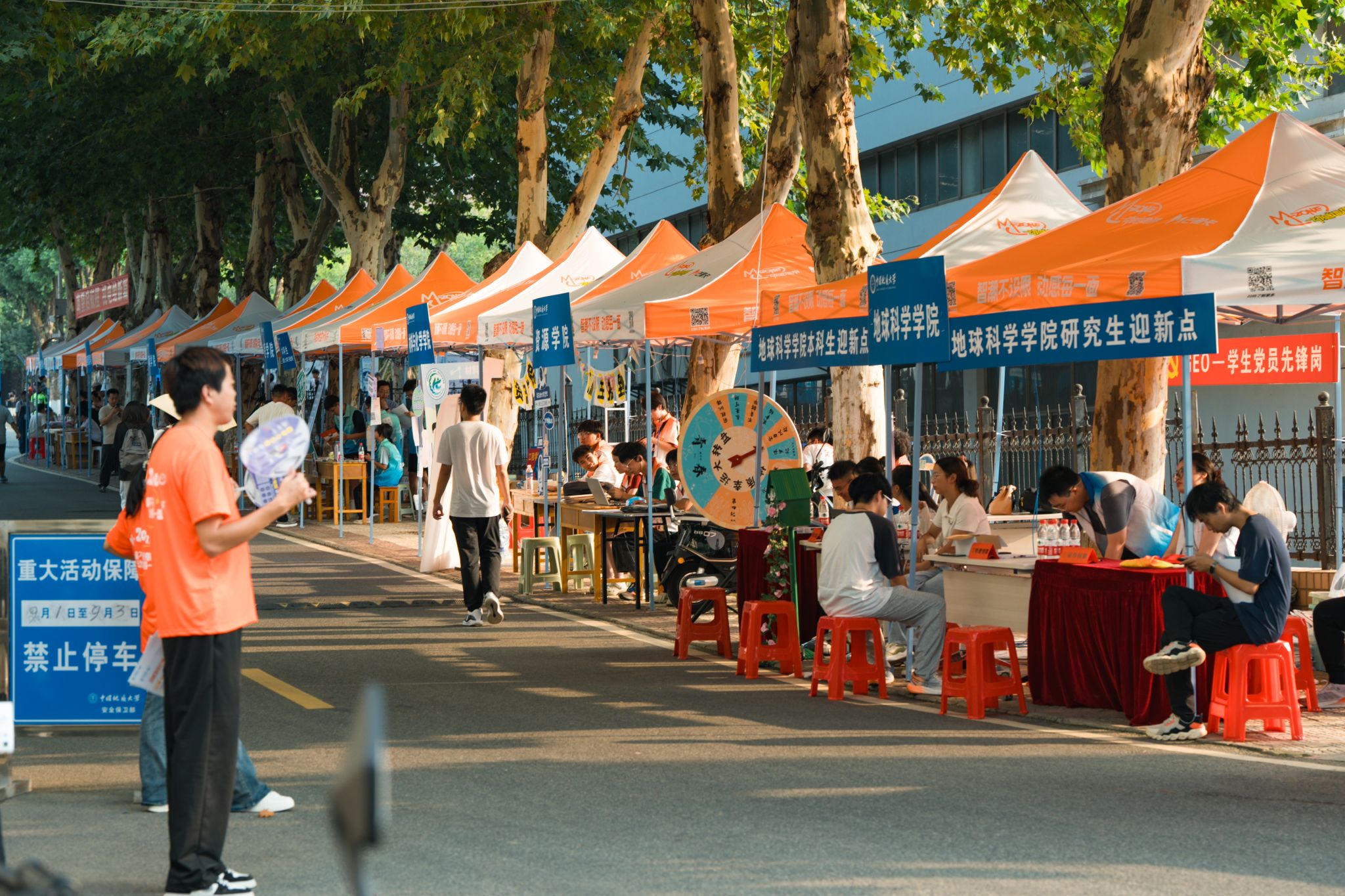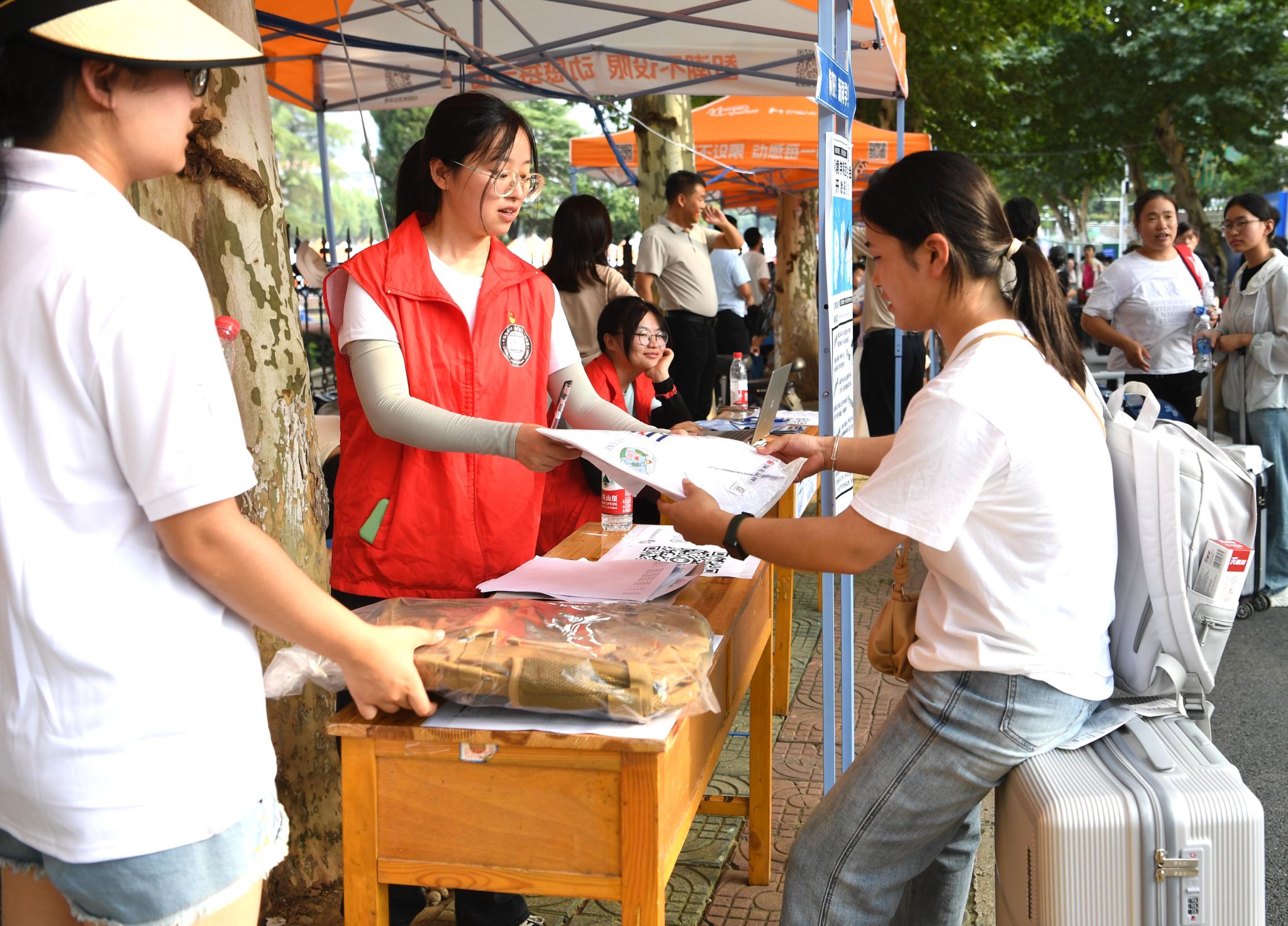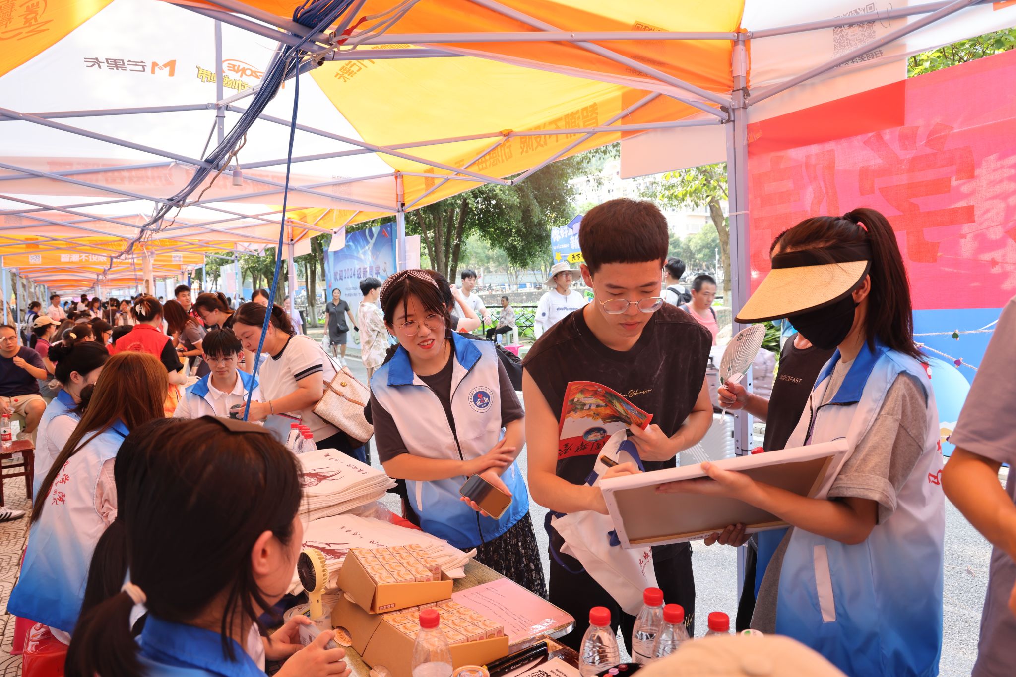 大转盘、签名墙、各式小礼品……虽烈日炎炎,但空气中氤氲着欢乐的气息。微笑、拥抱、定格,在各学院的迎新报到点,大家把美好记忆珍藏。