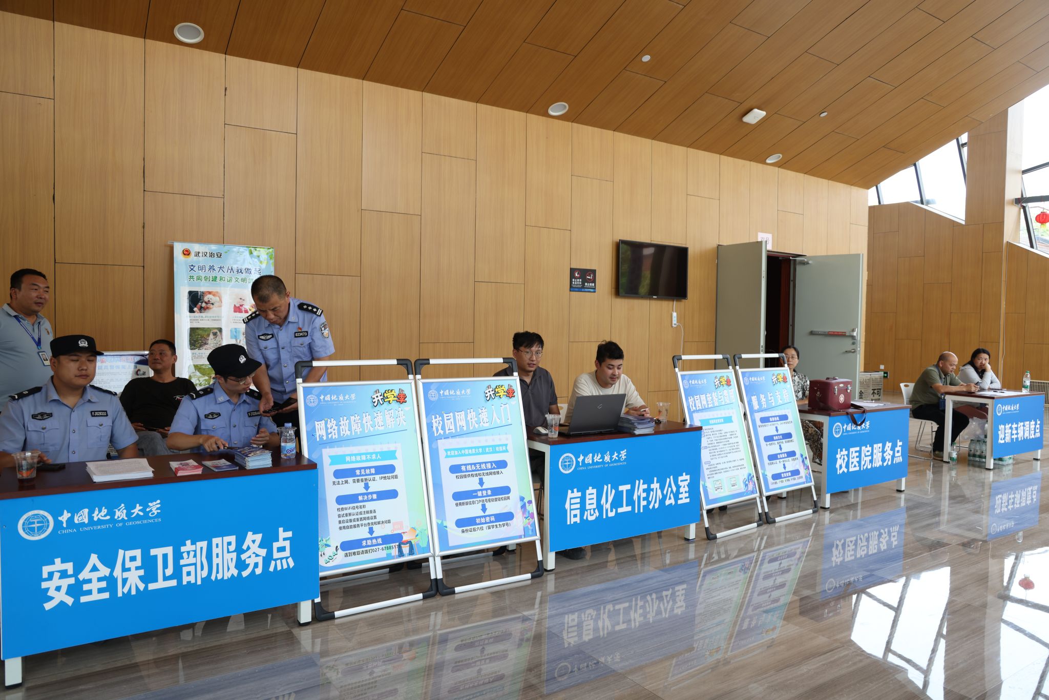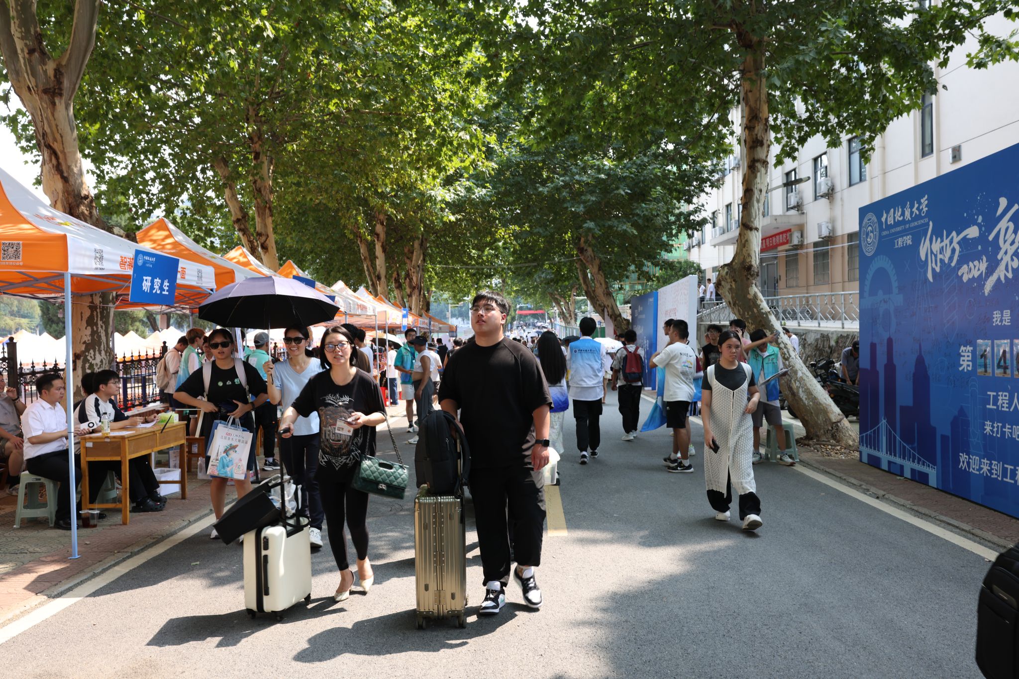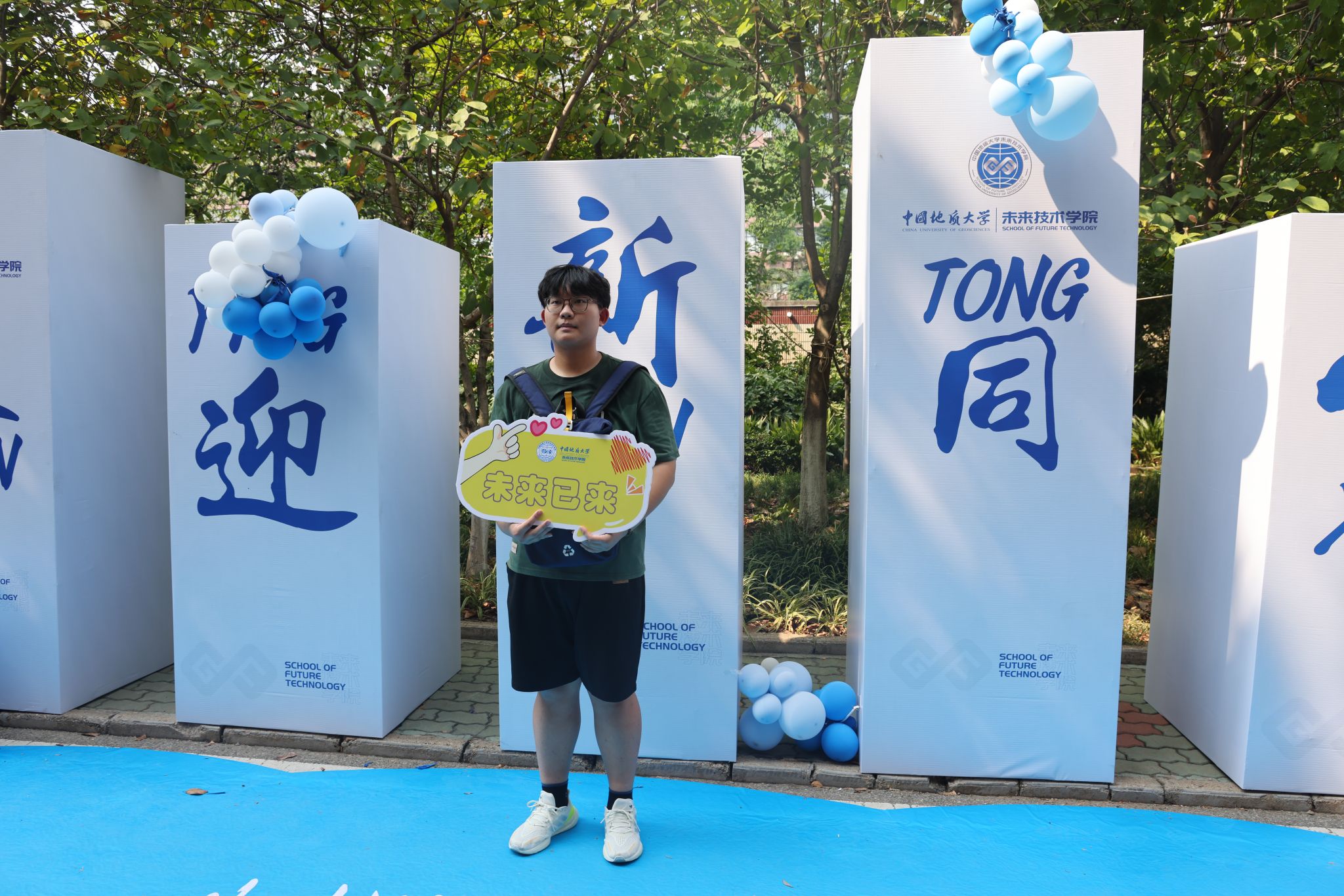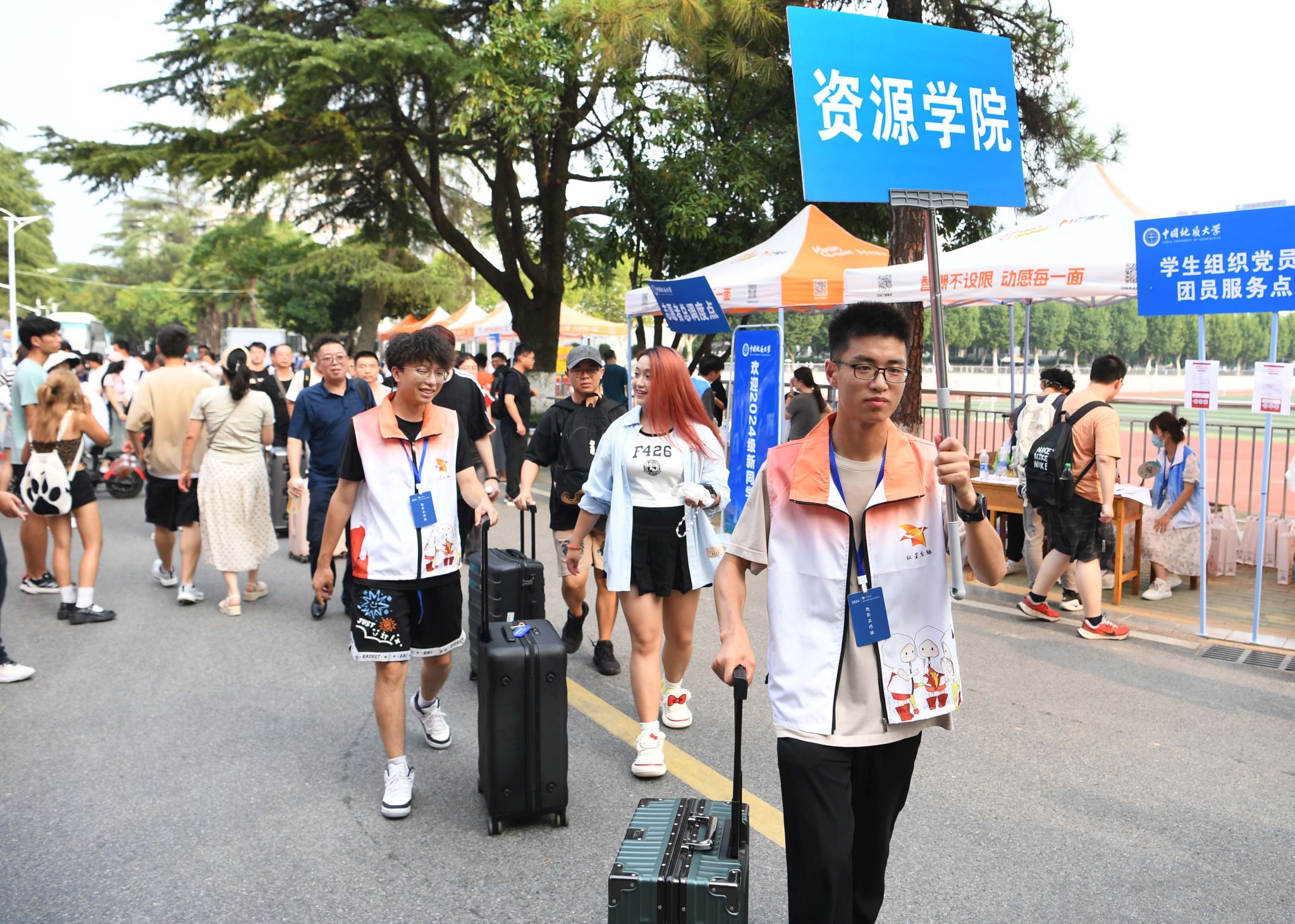专车接送,到站指引式。在迎新点递交资料、录入信息、身份确认。在蔚蓝晴空下,新生们正式成为地大人,踏出青春最坚定的步伐。