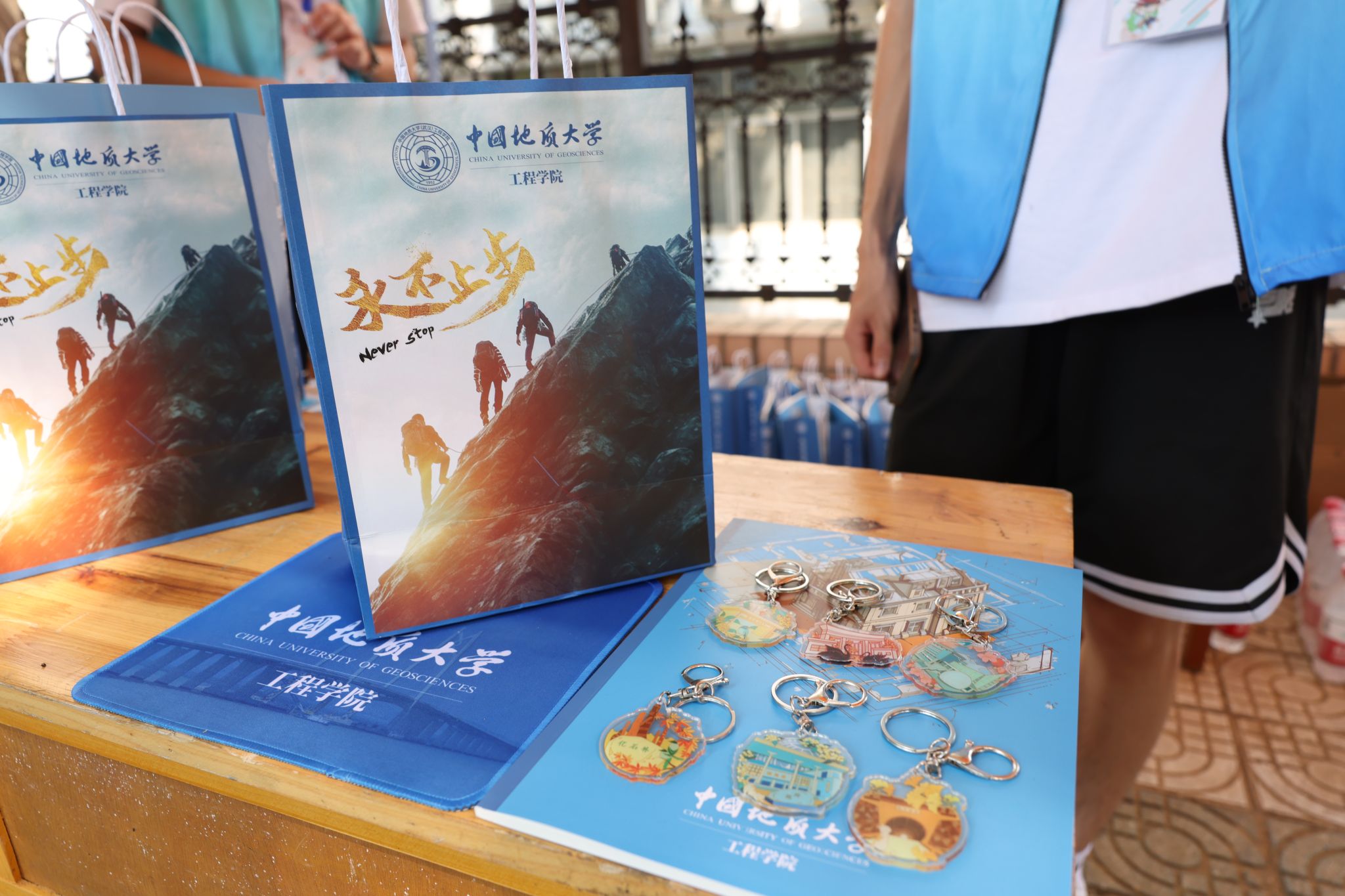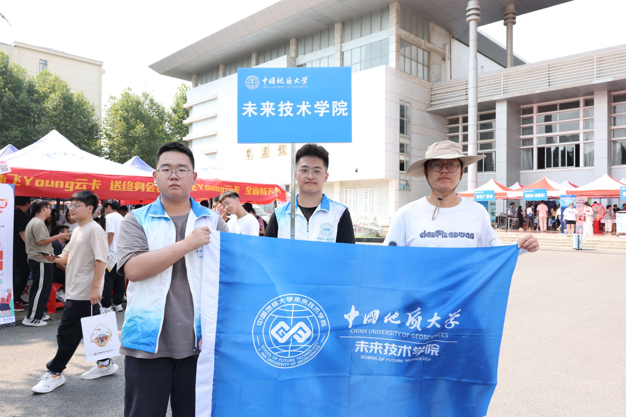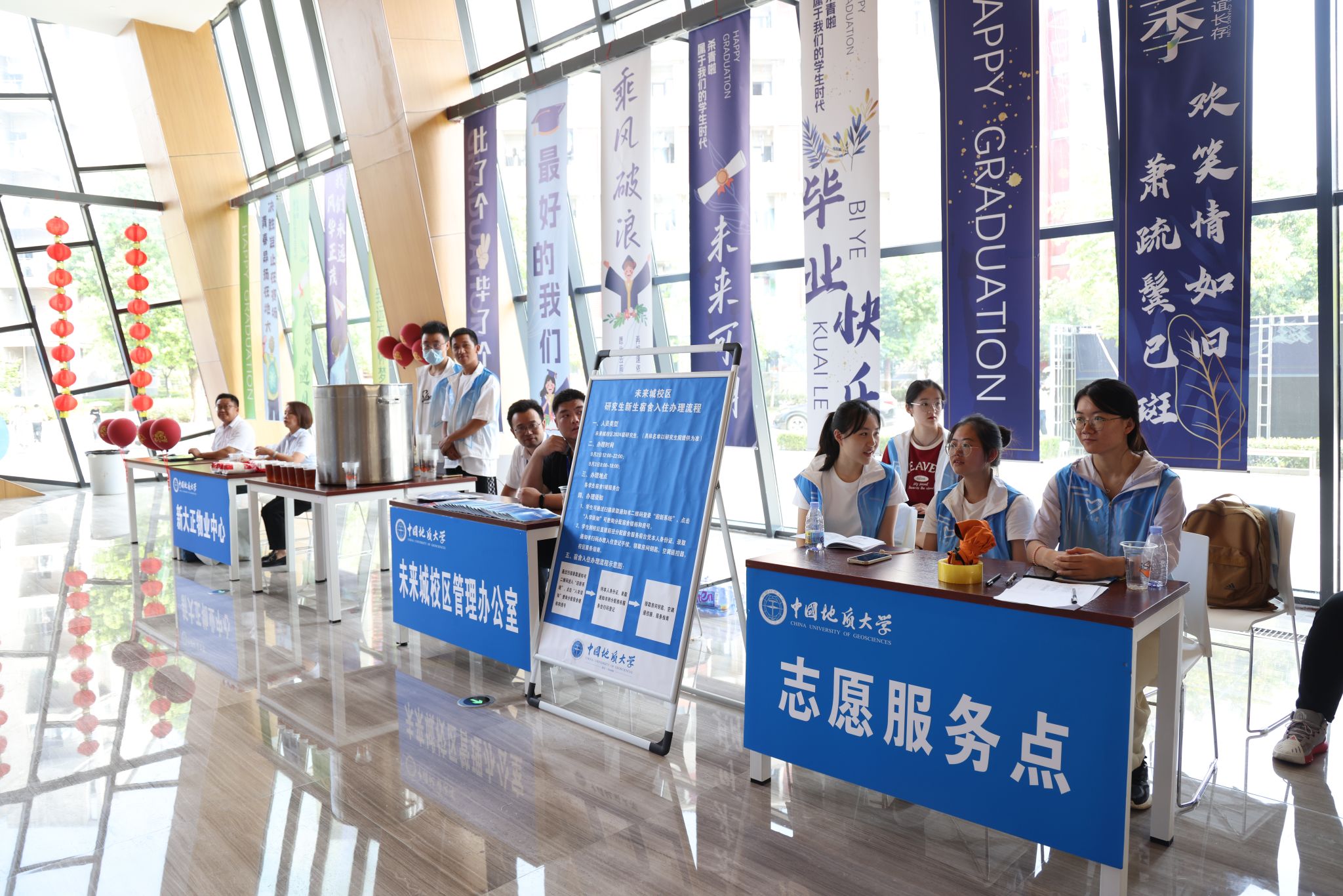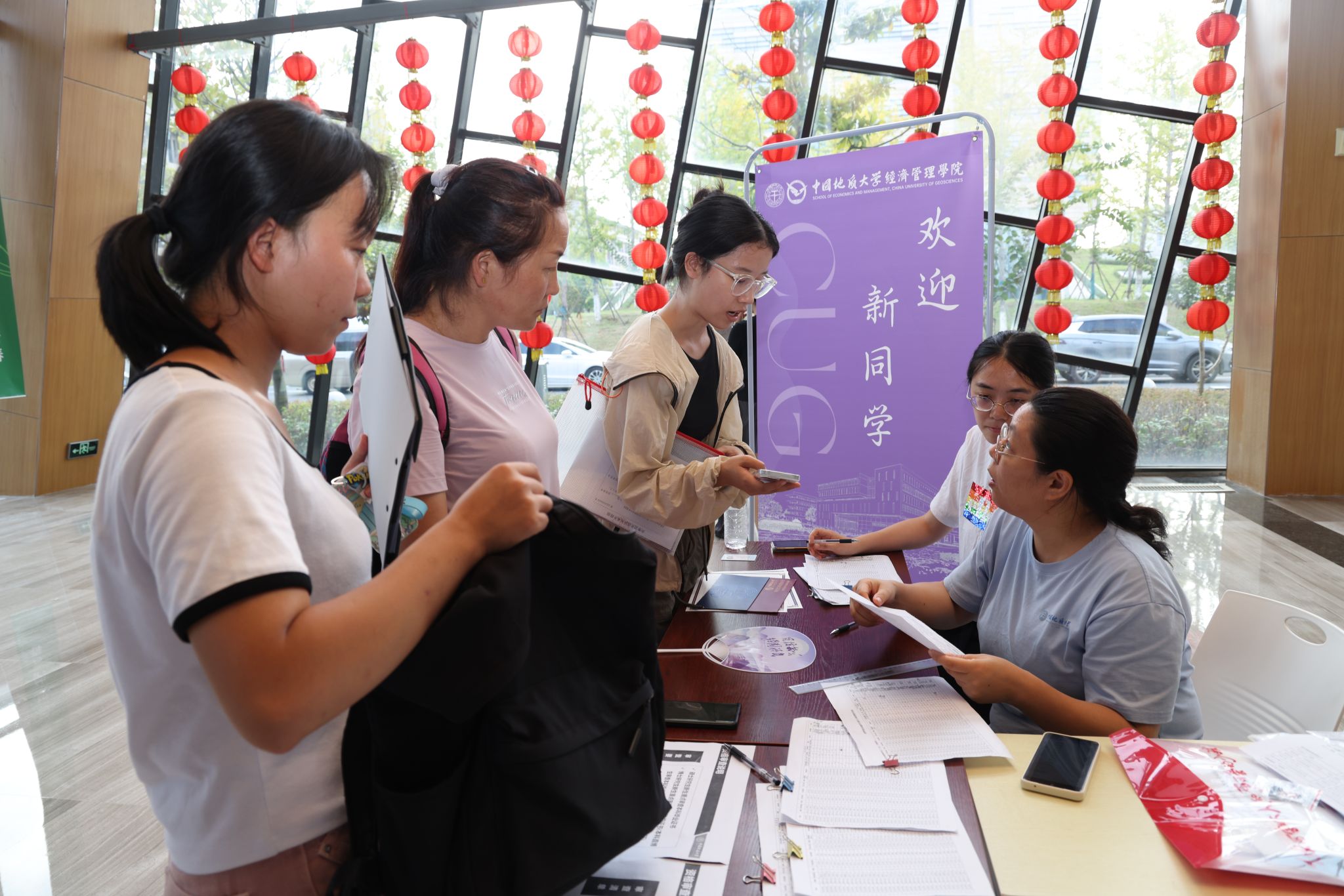 专车接送,到站指引式。在迎新点递交资料、录入信息、身份确认。在蔚蓝晴空下,新生们正式成为地大人,踏出青春最坚定的步伐。